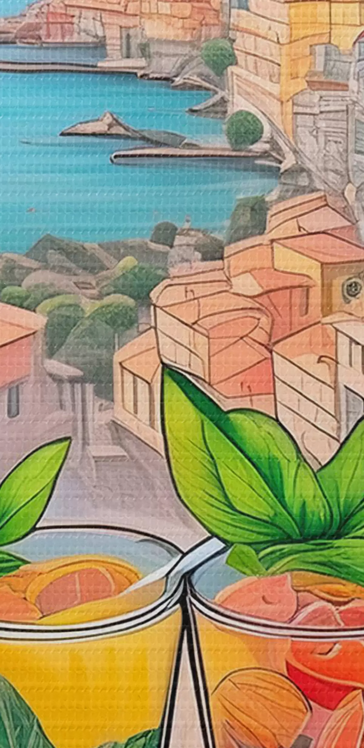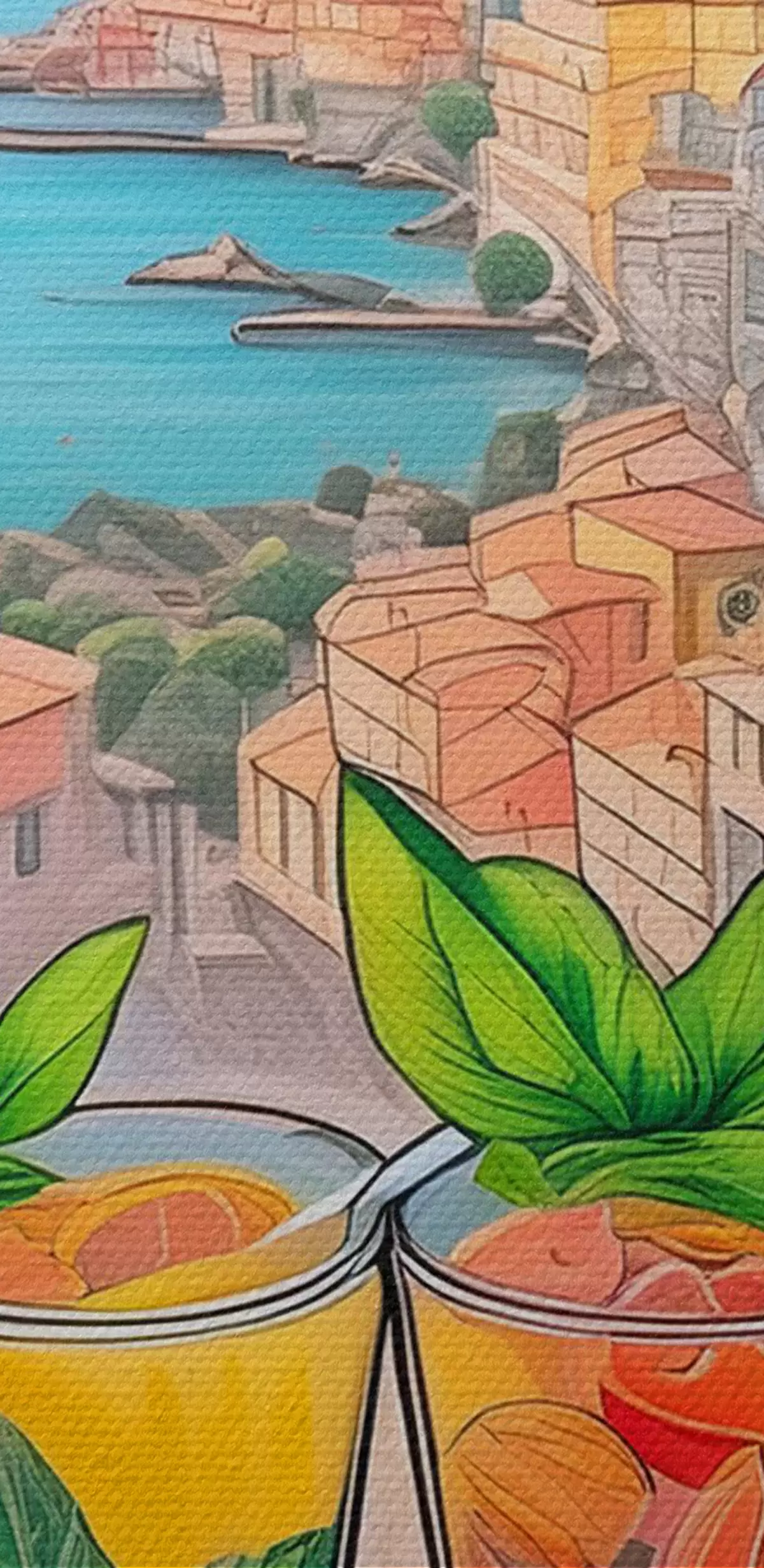 Картина Італійське місто, морське узбережжя, коктейлі, покликання, архітектура, літо, акварель  s38392