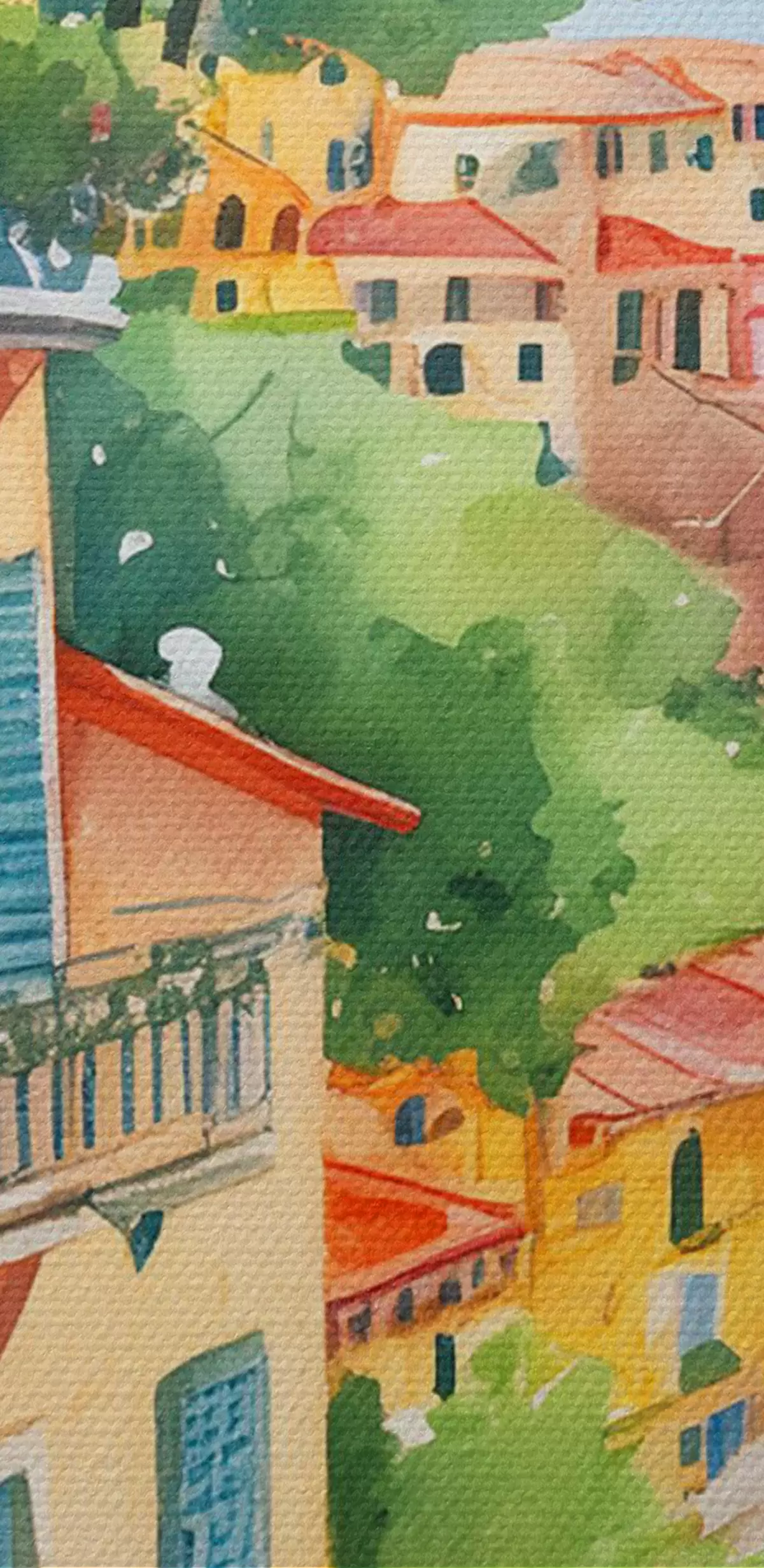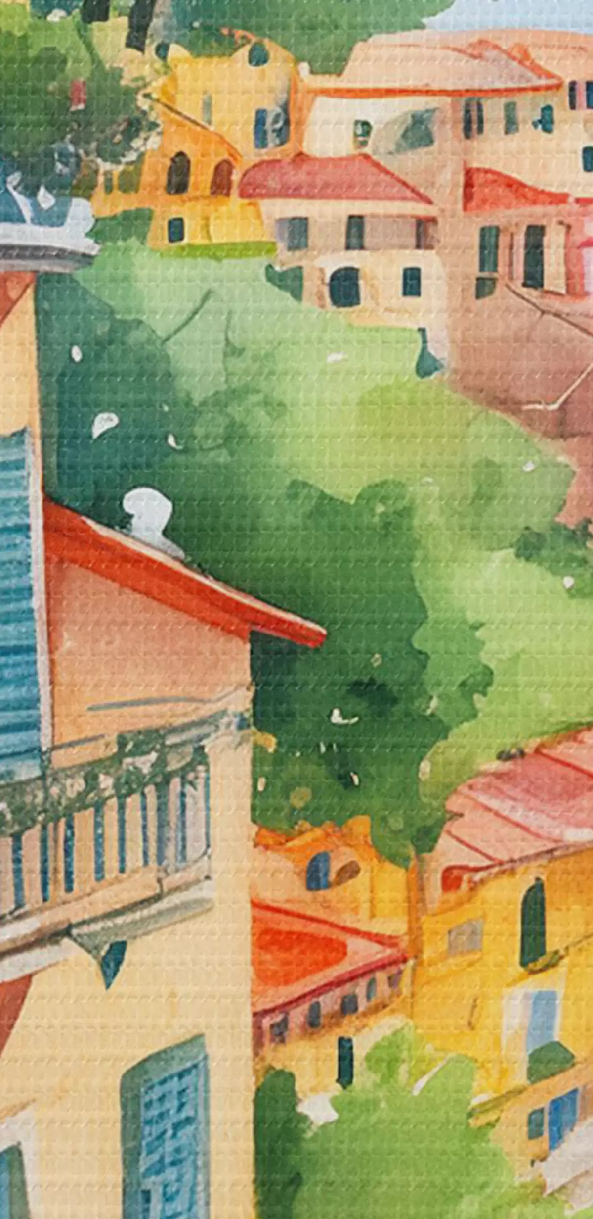 Картина Архітектура італійського міста, узбережжя Амальфітанського моря, літо, акварель, лимонне дерево s38393