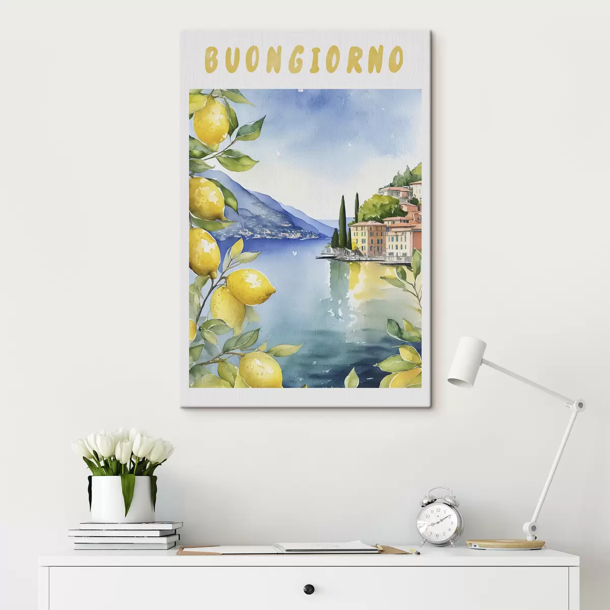 Картина Італійське озеро, літо, акварель, природний ландшафт, лимони, міська архітектура Арт. s38394