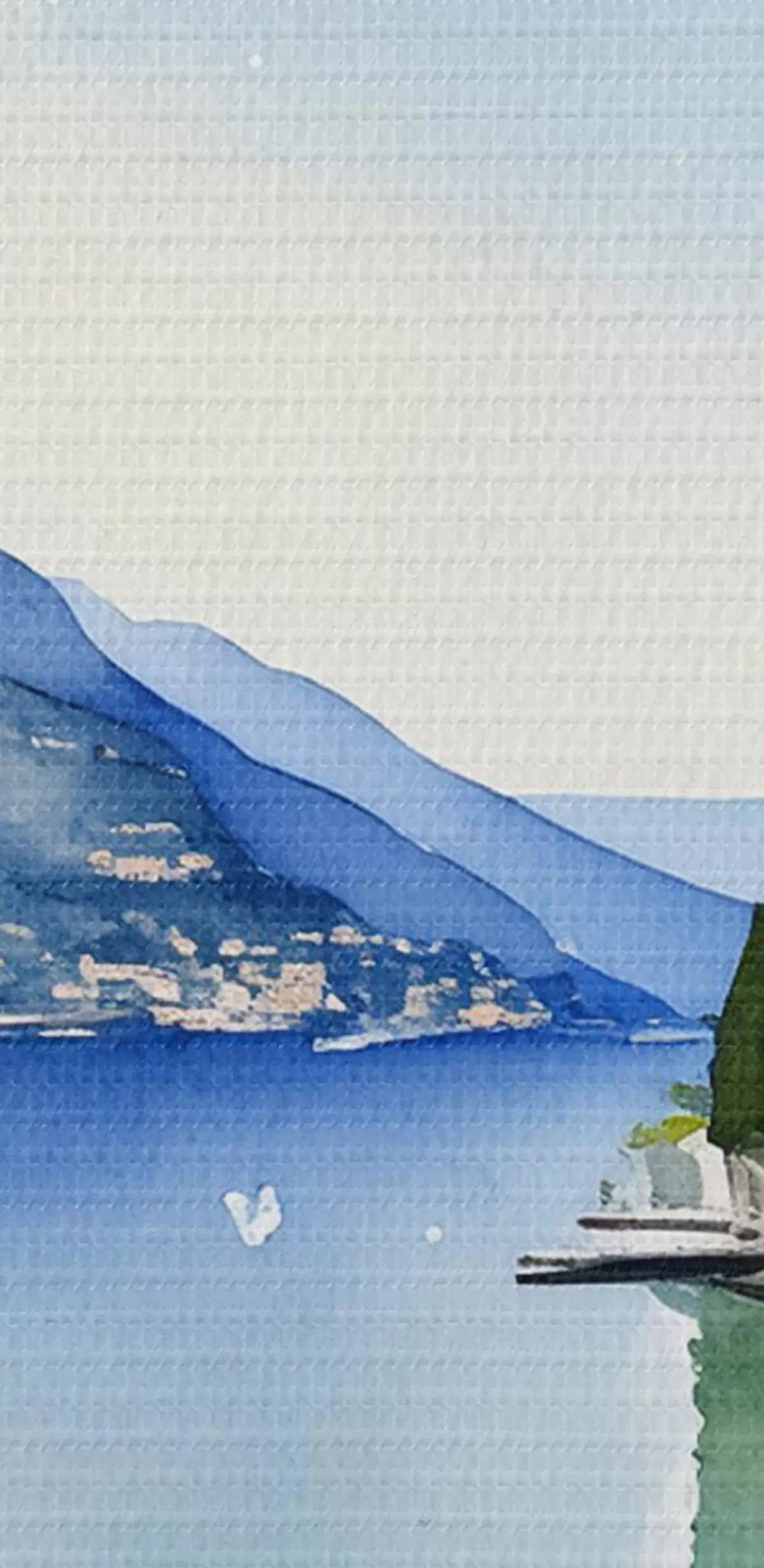 Картина Італійське озеро, літо, акварель, природний ландшафт, лимони, міська архітектура  s38394