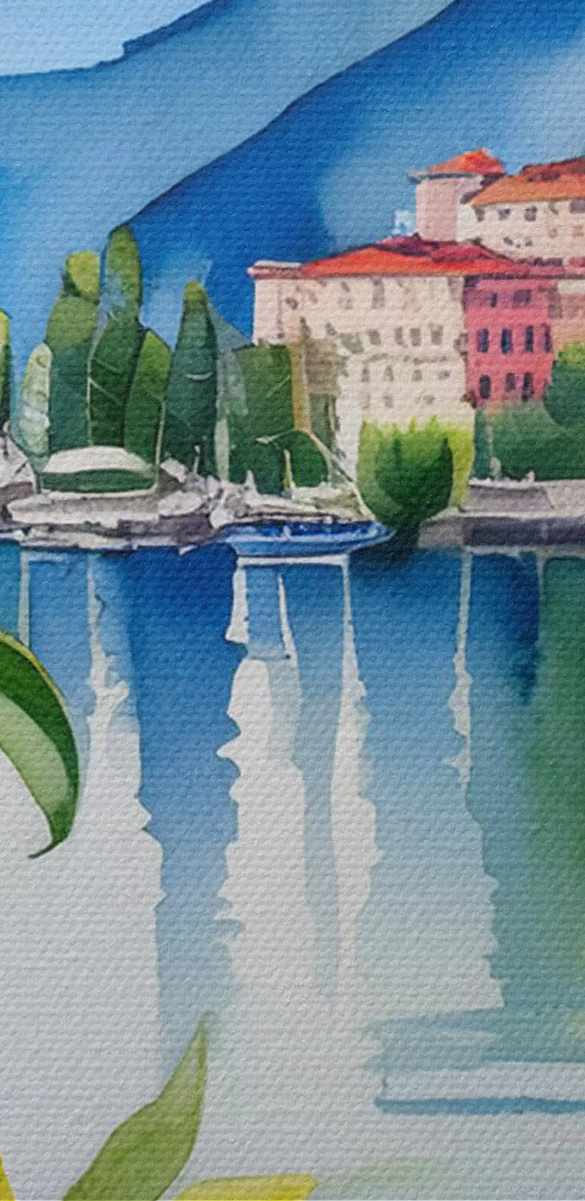 Картина Озеро Комо, акварель, Італія, літо, гори, лимонне дерево, море, старе місто s38398