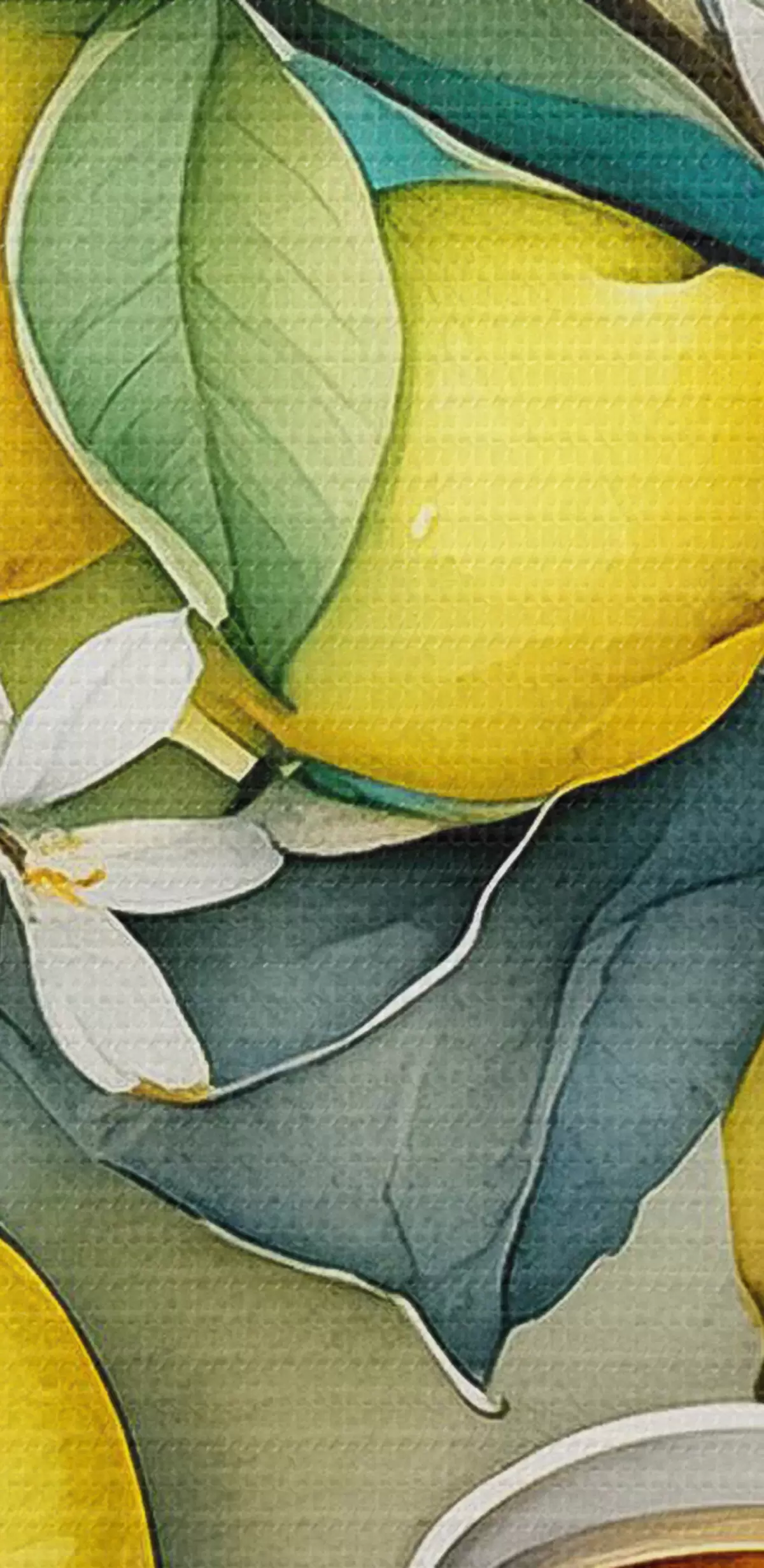 Картина Лимони і квіти, акварель, сніданок, чашка чаю, богемний стиль s38403
