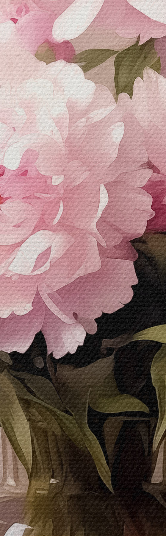 Картина Рожеві півонії в скляній вазі на чорному тлі, імітація олійного живопису, квіти s38482