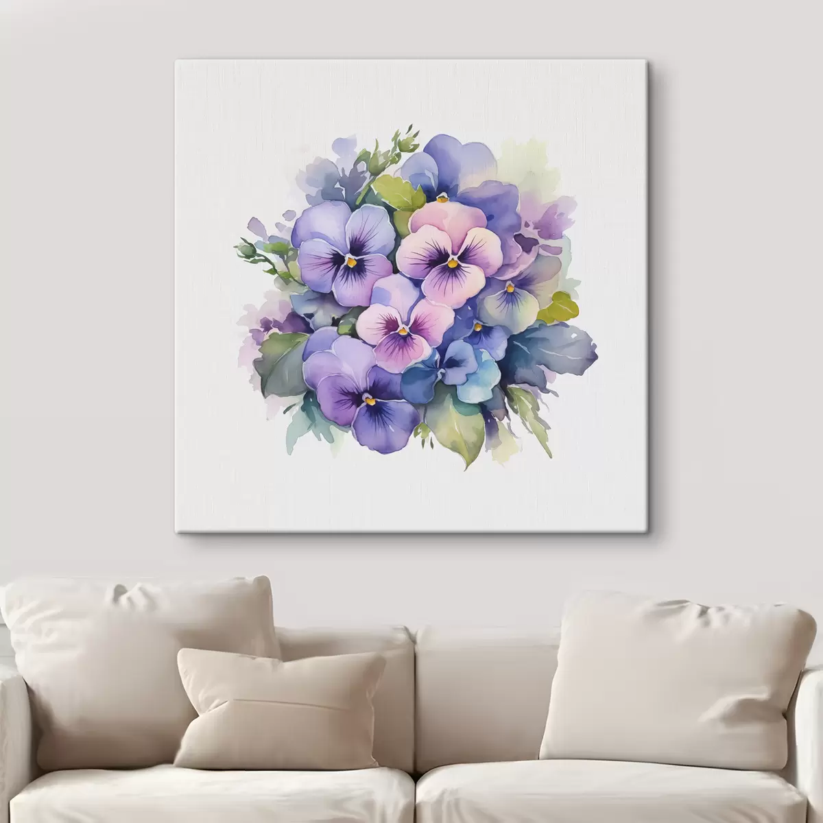 Картина Фіалки аквареллю ілюстрації, букет, квіти, синій, фіолетовий, зелений колір Арт. s38486