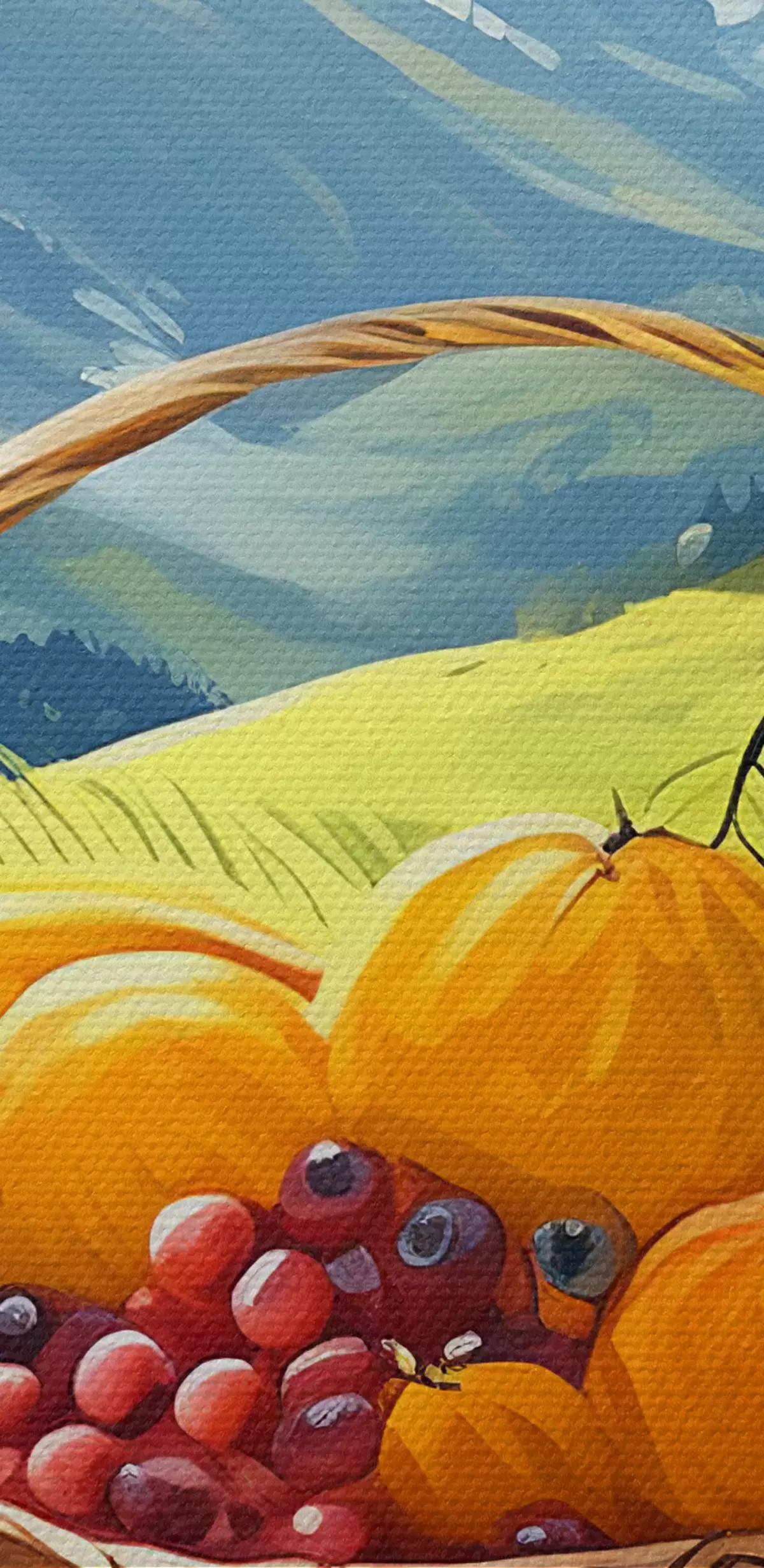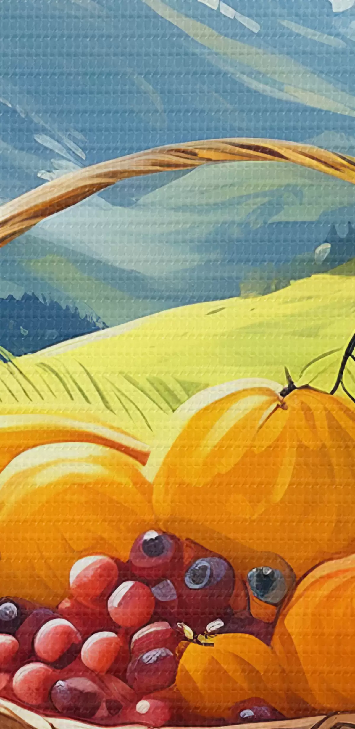 Картина кошик фруктів на галявині в горах Арт. s38654