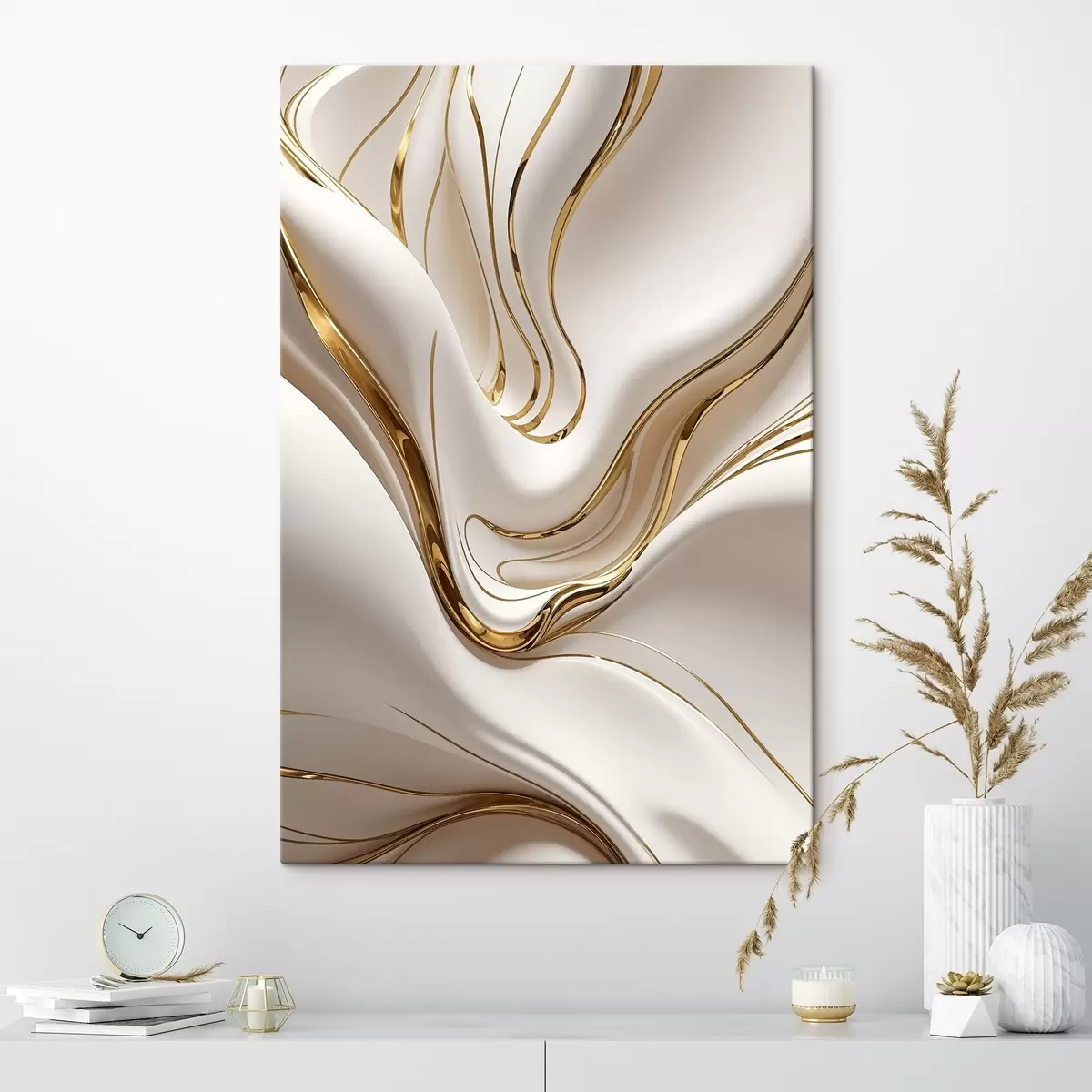 Картина Плавні білі абстрактні форми, що нагадують рідкий або розплавлений метал, динамічна композиція Арт. s38767