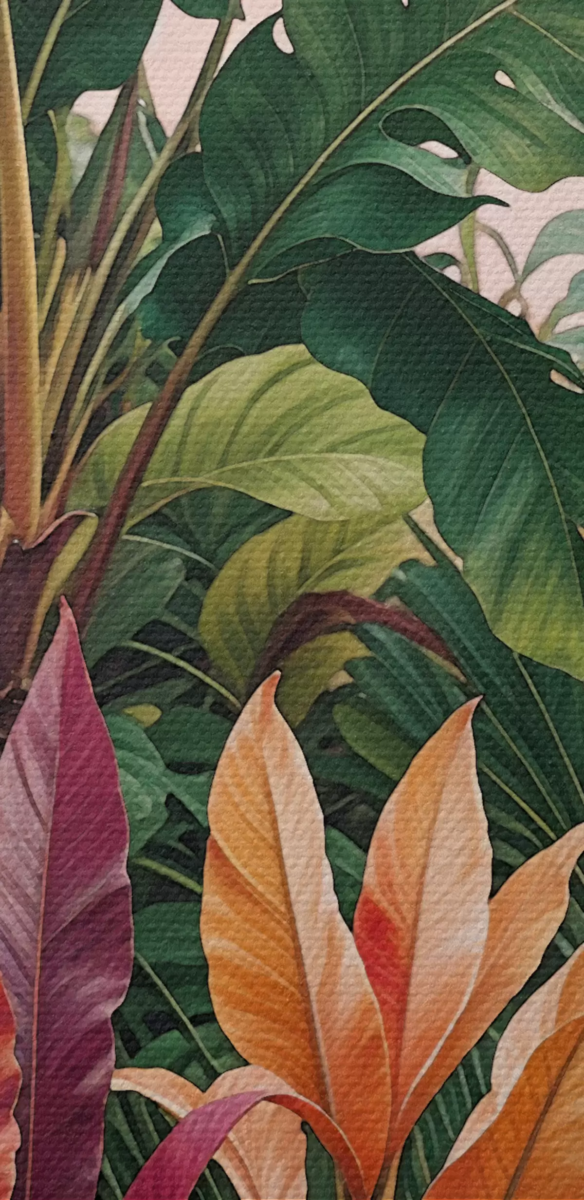 Картина Пишні тропічні джунглі з яскравим зеленим листям, пальмовим листям і барвистими квітами Арт. s38817