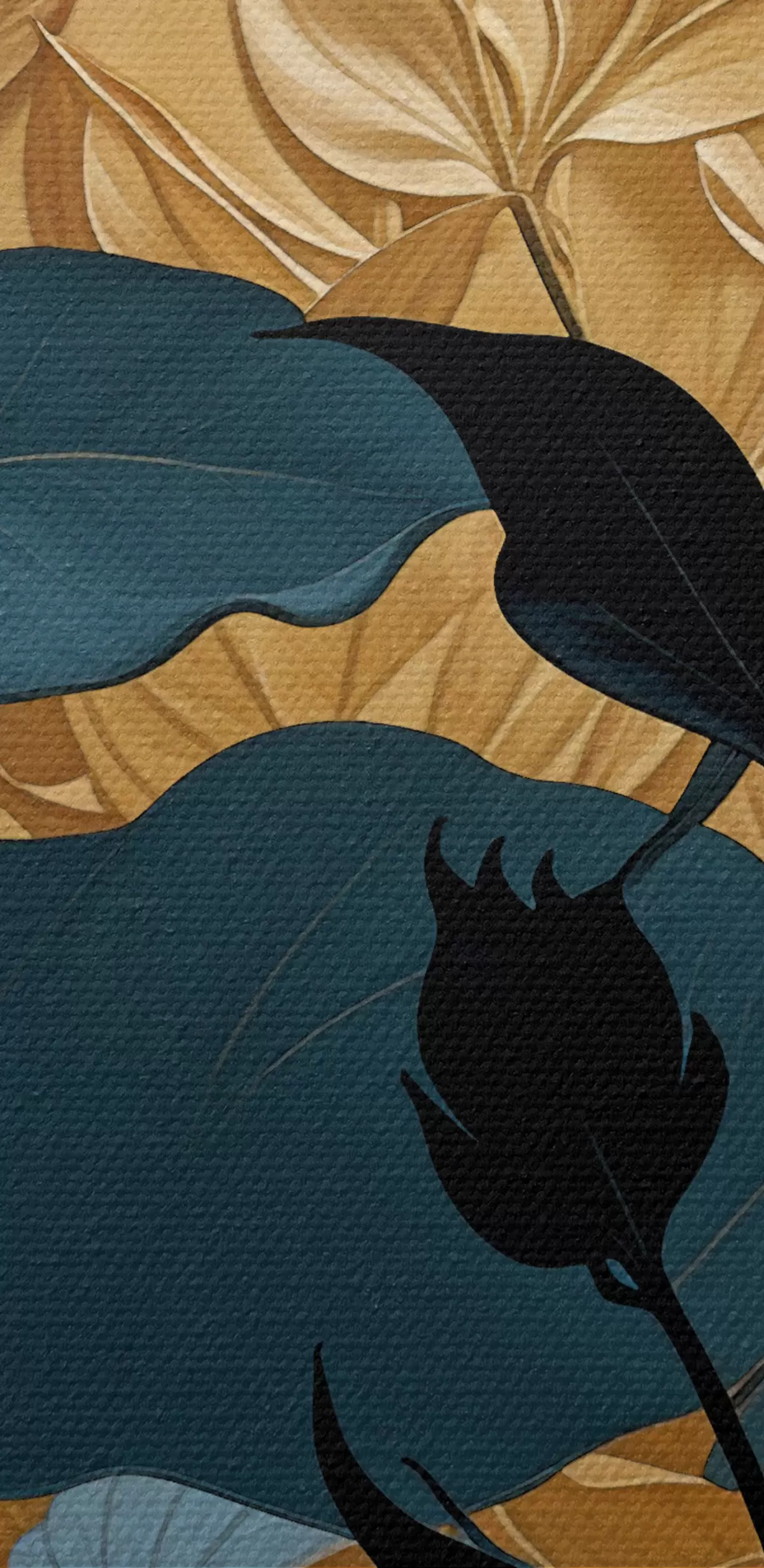 Картина Абстрактна квіткова композиція з великим листям і темними силуетами Арт. s38822