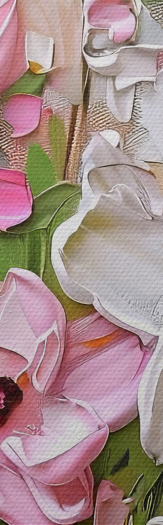 Для замовлення доступні три типи матеріалу: Економ Полотно - щільний і міцний матеріал для цифрового друку, ідентичний художньому полотну, водонепроникна поверхня, реалістичне відтворення деталей, матеріал середньої зернистості. Преміум полотно - фактура нагадує полотно художника (переплетені дрібні нитки). М'яке, деталізоване відтворення зображення на матовій поверхні. Еко-Преміум - високоякісне 100% бавовняне полотно. Завдяки натуральним бавовняним волокнам матеріал міцний і зносостійкий. Відмінна передача кольору та деталізація.