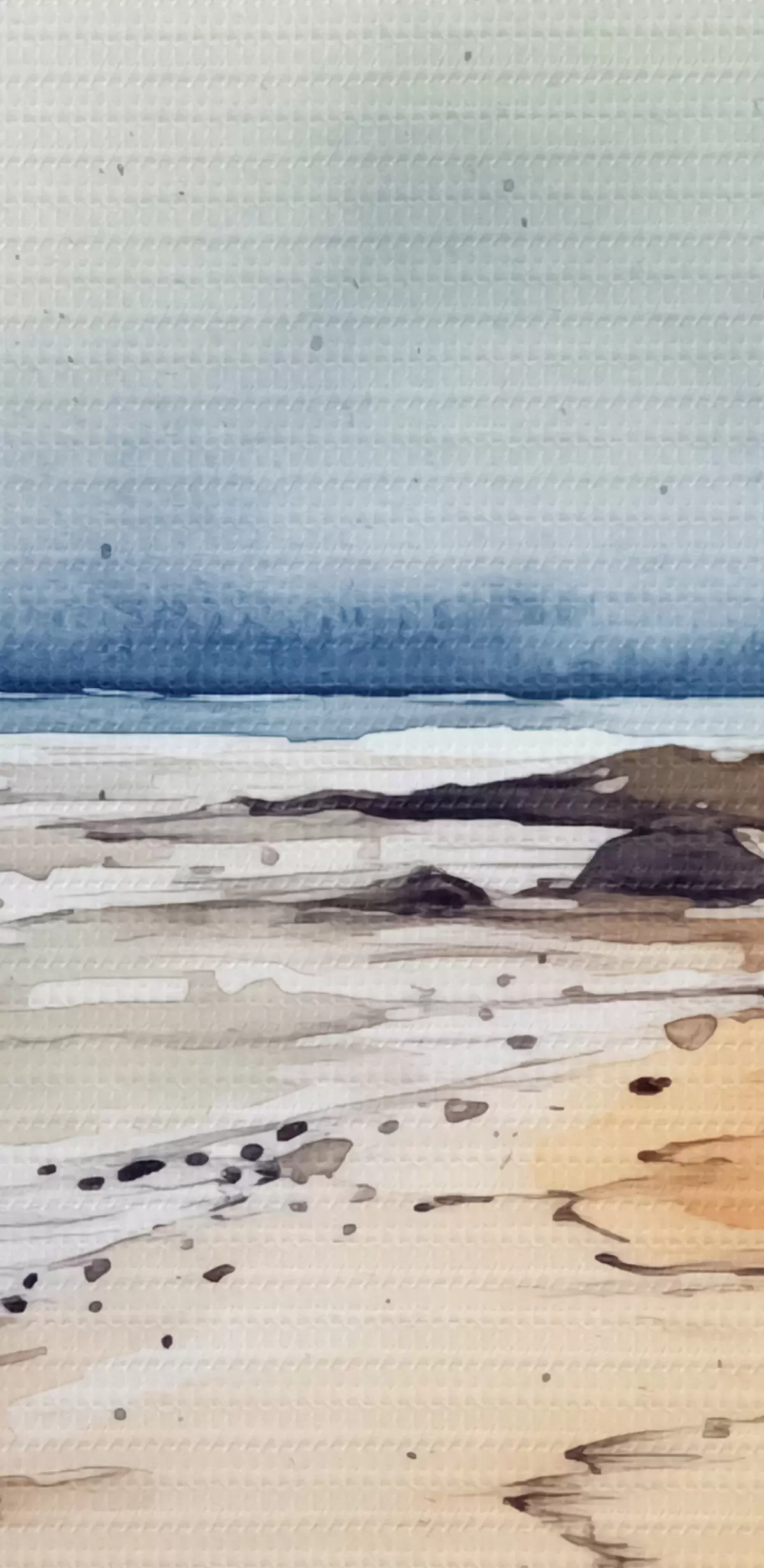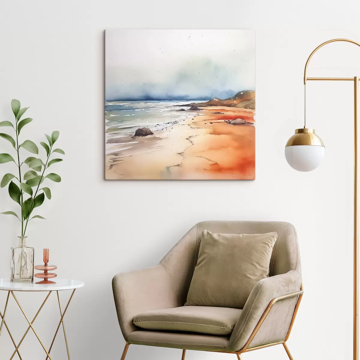 Картина Море і пляж, дощ, акварель, бризки, краєвид, краєвид, синій, оранжевий колір Арт. s38936