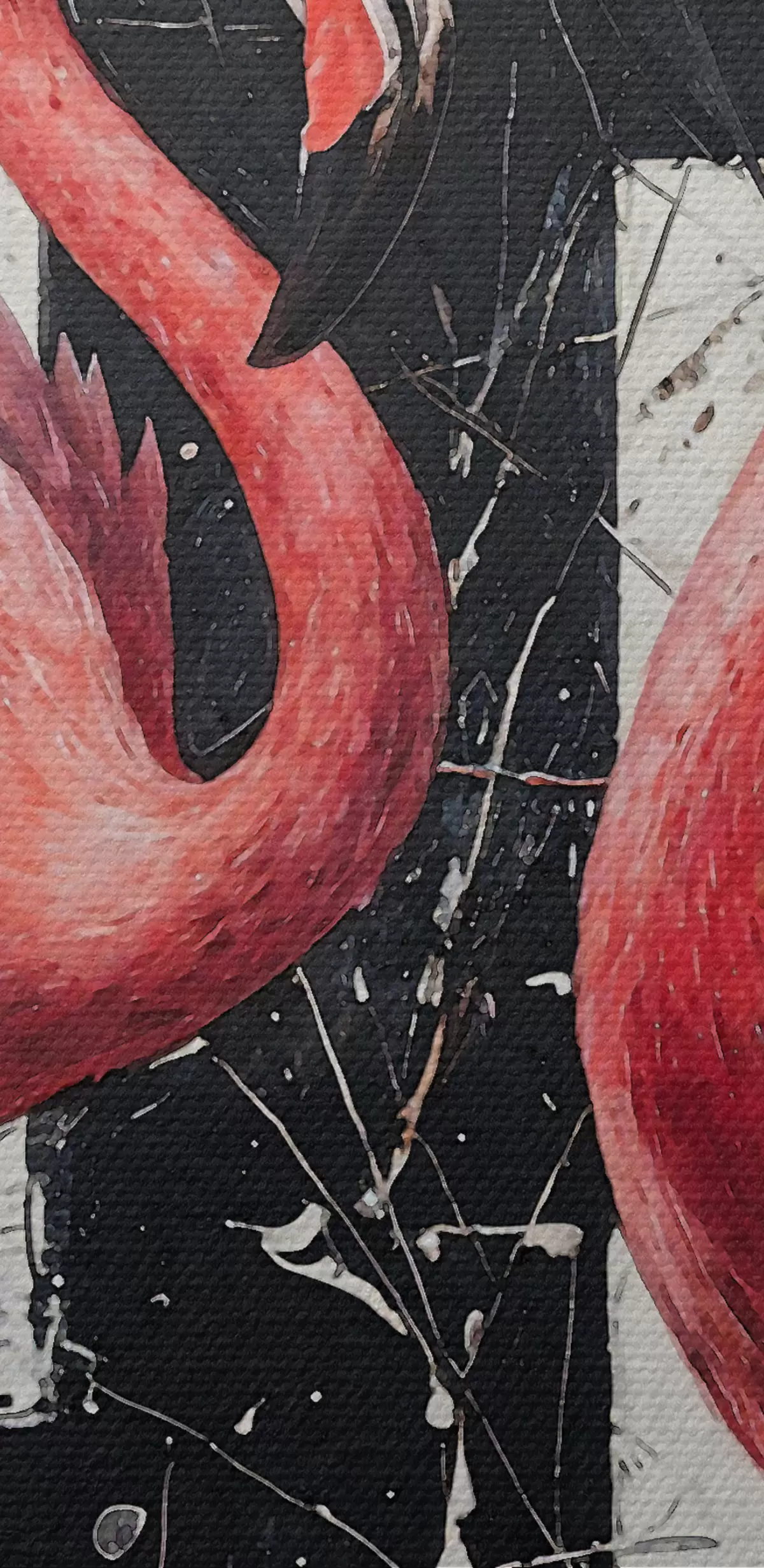 Картина Два рожеві фламінго стоять перед чорно-білим абстрактним фоном художнього живопису s38954