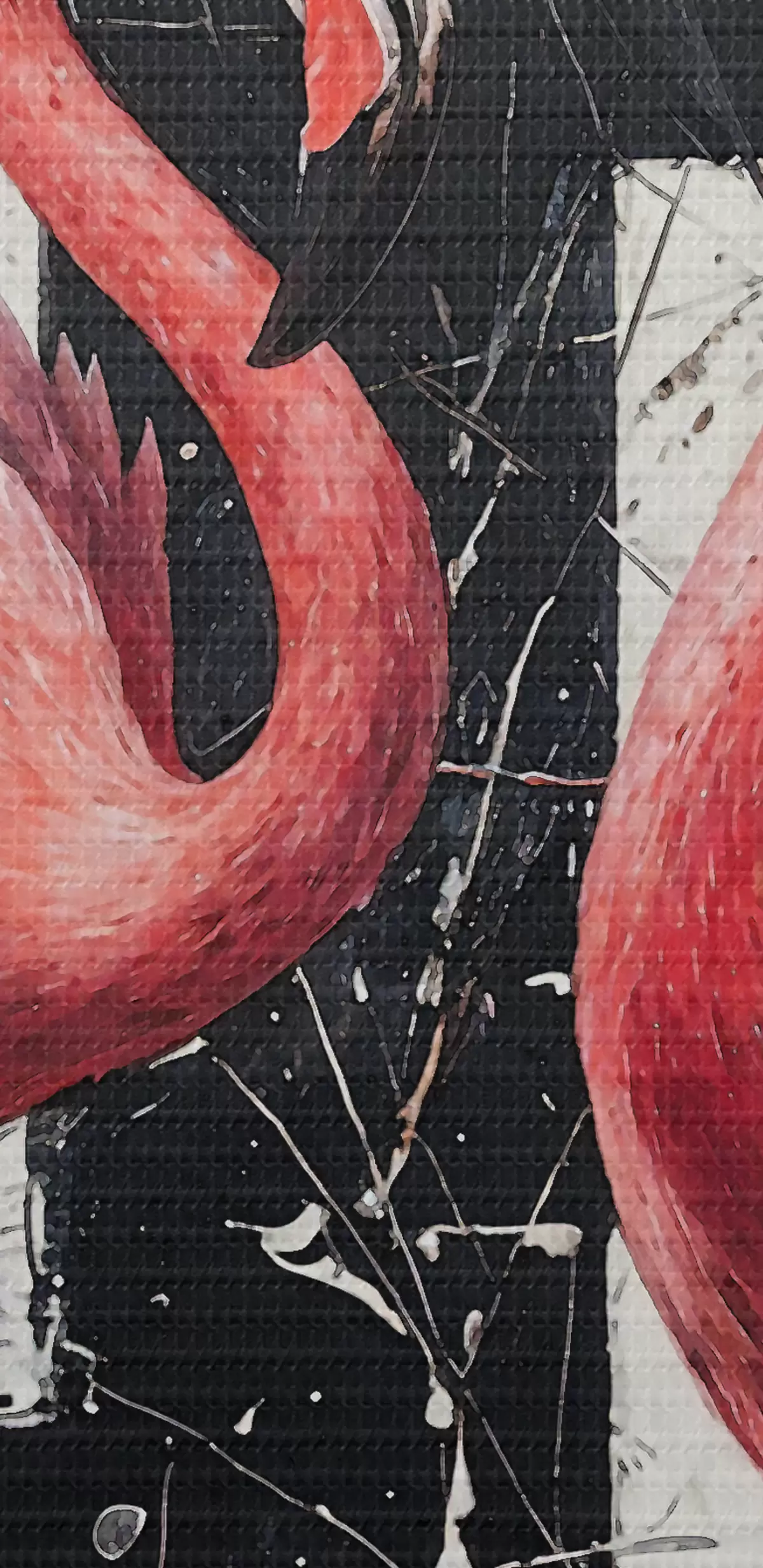 Картина Два рожеві фламінго стоять перед чорно-білим абстрактним фоном художнього живопису Арт. s38954