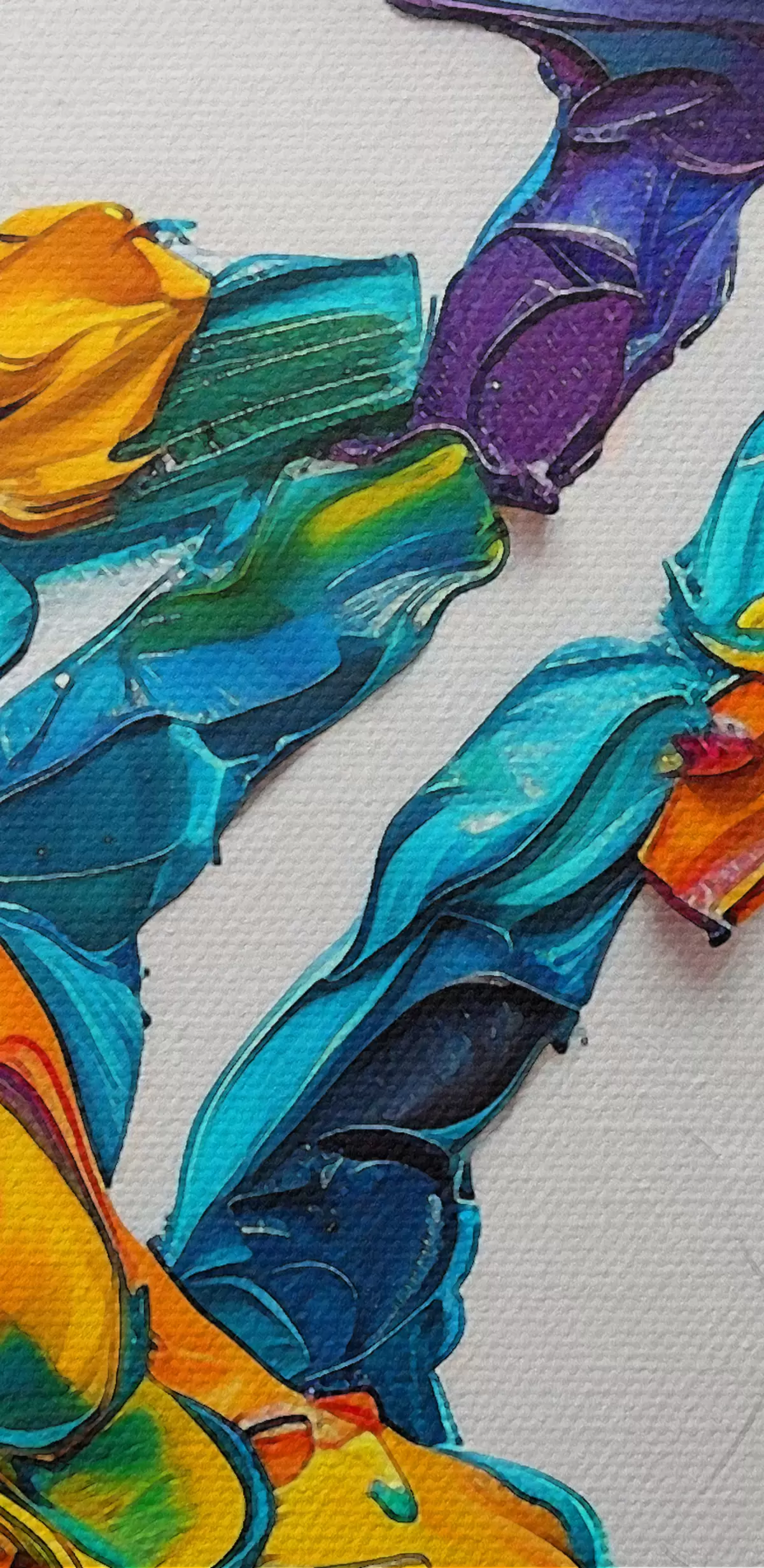 Картина Барвистий абстрактний імпасто олійний живопис руки з яскравими мазками синьої, помаранчевої, жовтої та червоної фарби Арт. s38955