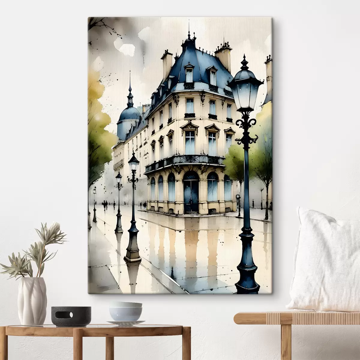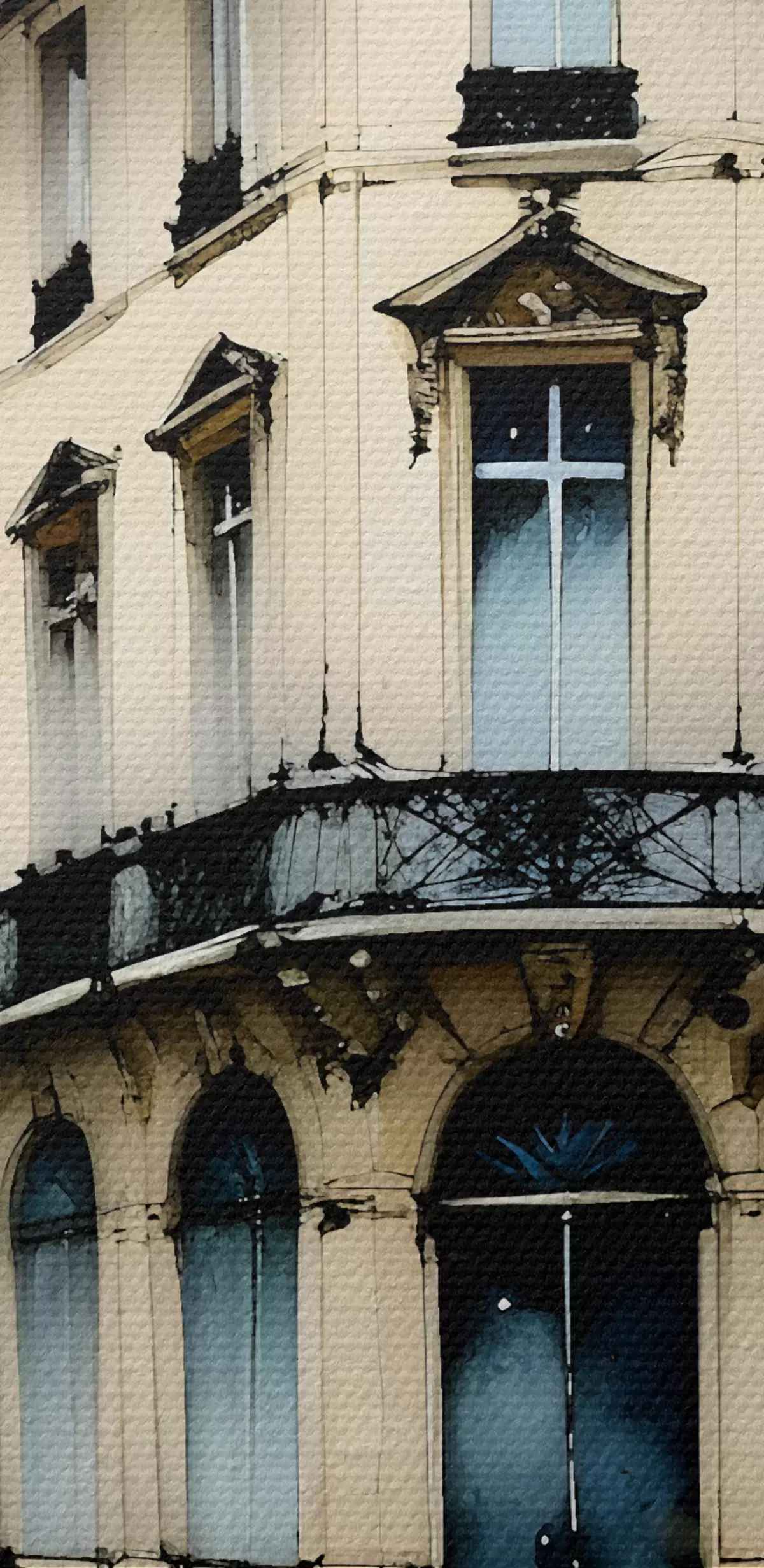 Картина Картина аквареллю історичної будівлі з вигнутим фасадом і декоративними архітектурними елементами s38975