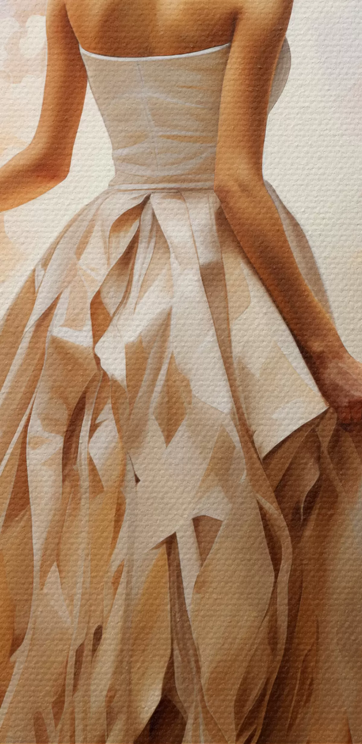 Картина Дівчина в білій весільній довгій сукні стоїть біля вікна серед вогню, малюючи ручною роботою s39125