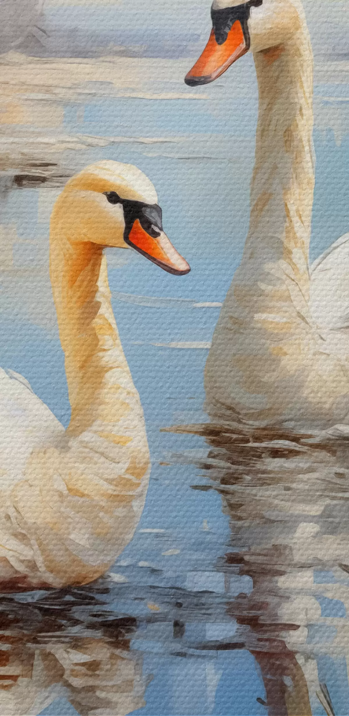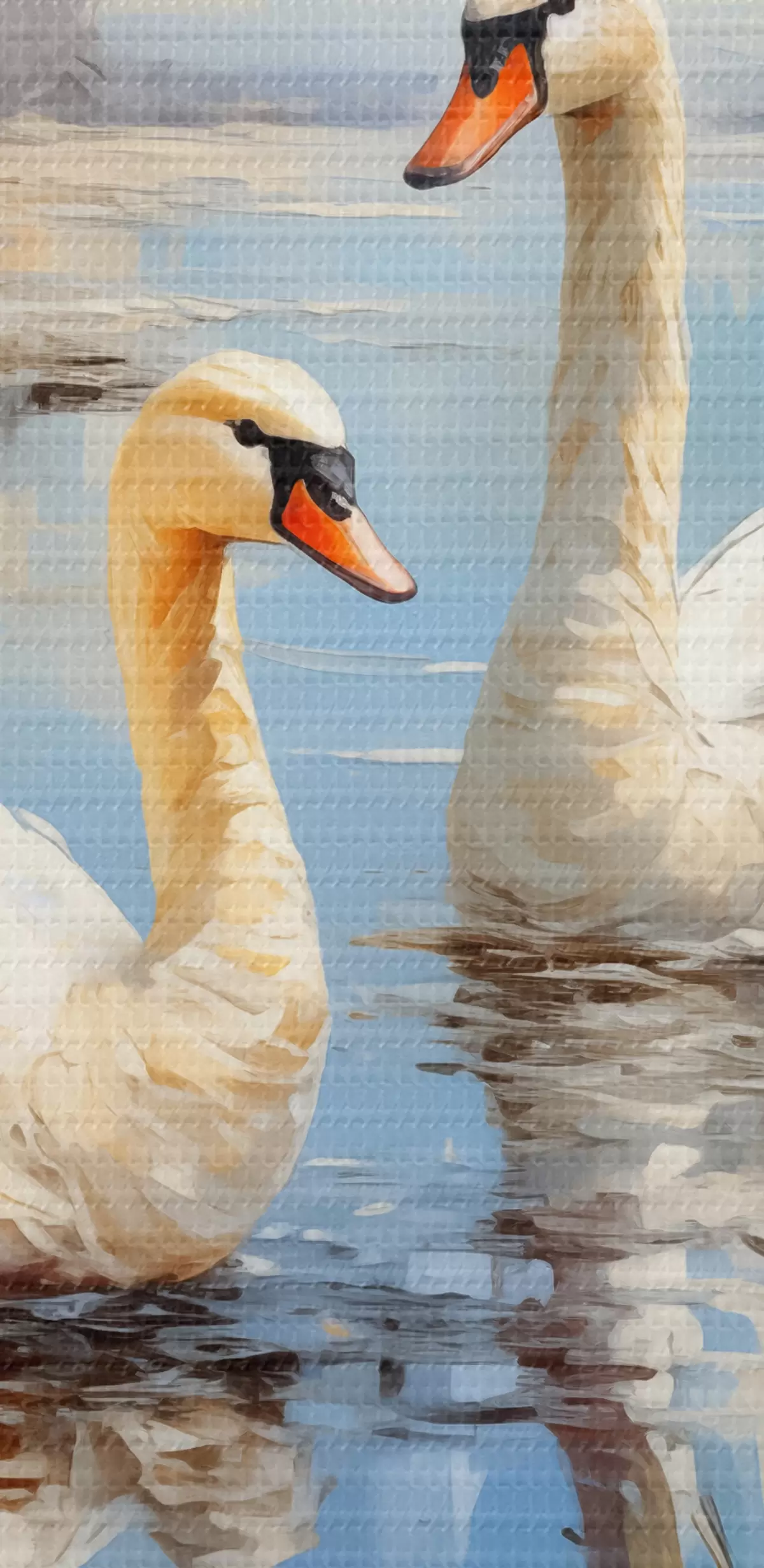 Картина По річці серед очерету пливуть білі гуси, синього, білого, бежевого кольору Арт. s39130