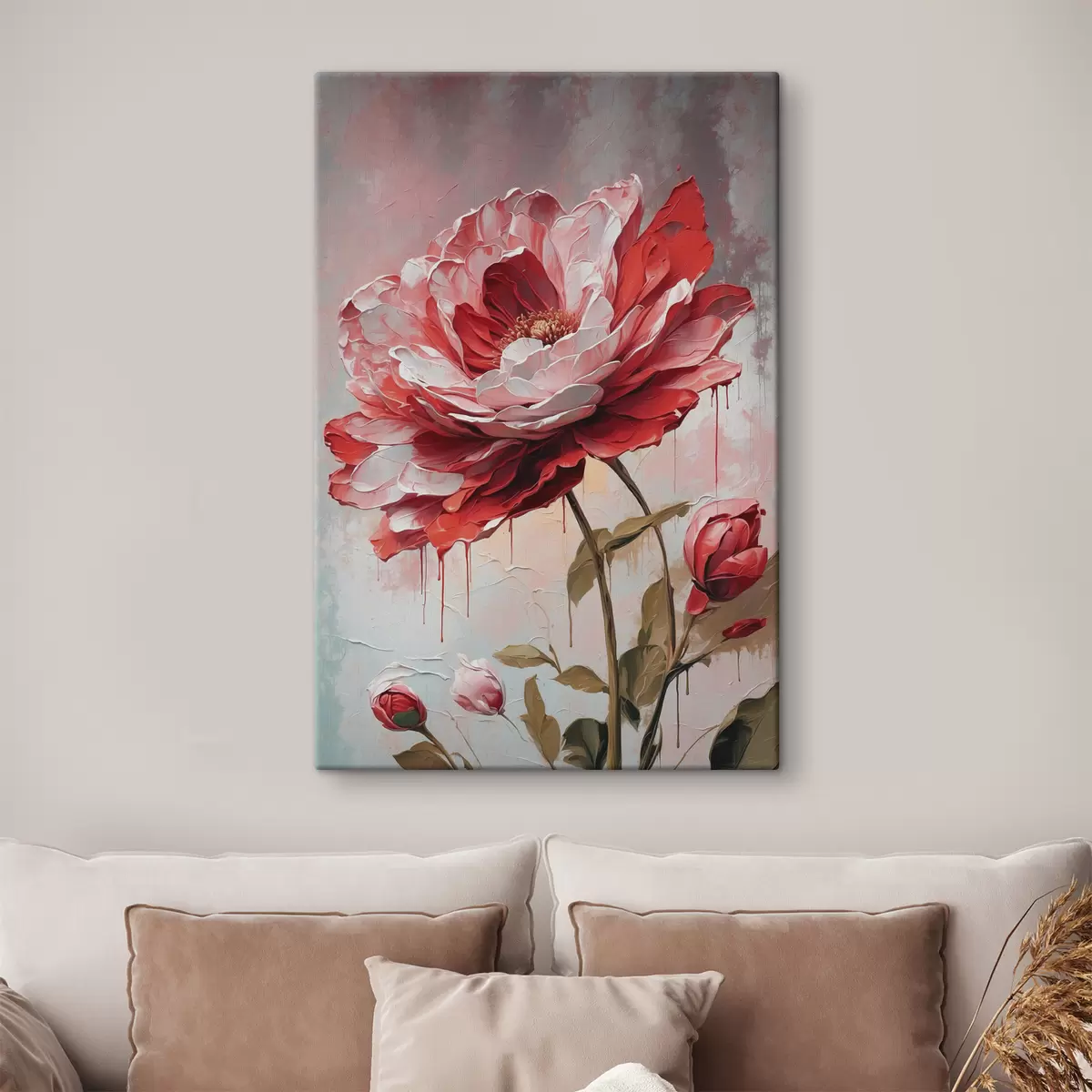 Картина Червона квітка на біло-сірому фоні s39173