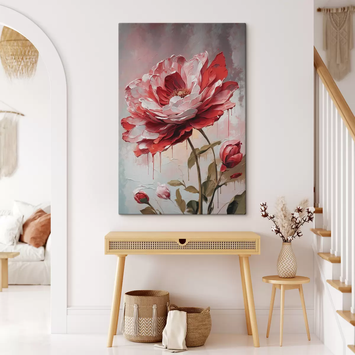 Картина Червона квітка на біло-сірому фоні Арт. s39173