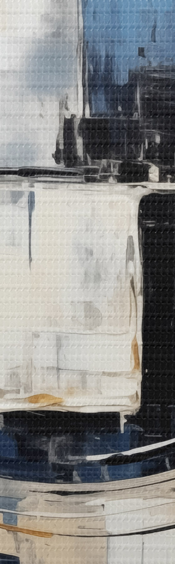 Картина Абстрактний кубізм, синій, оранжевий, білий штрихи, кругова фігура Арт. s39179