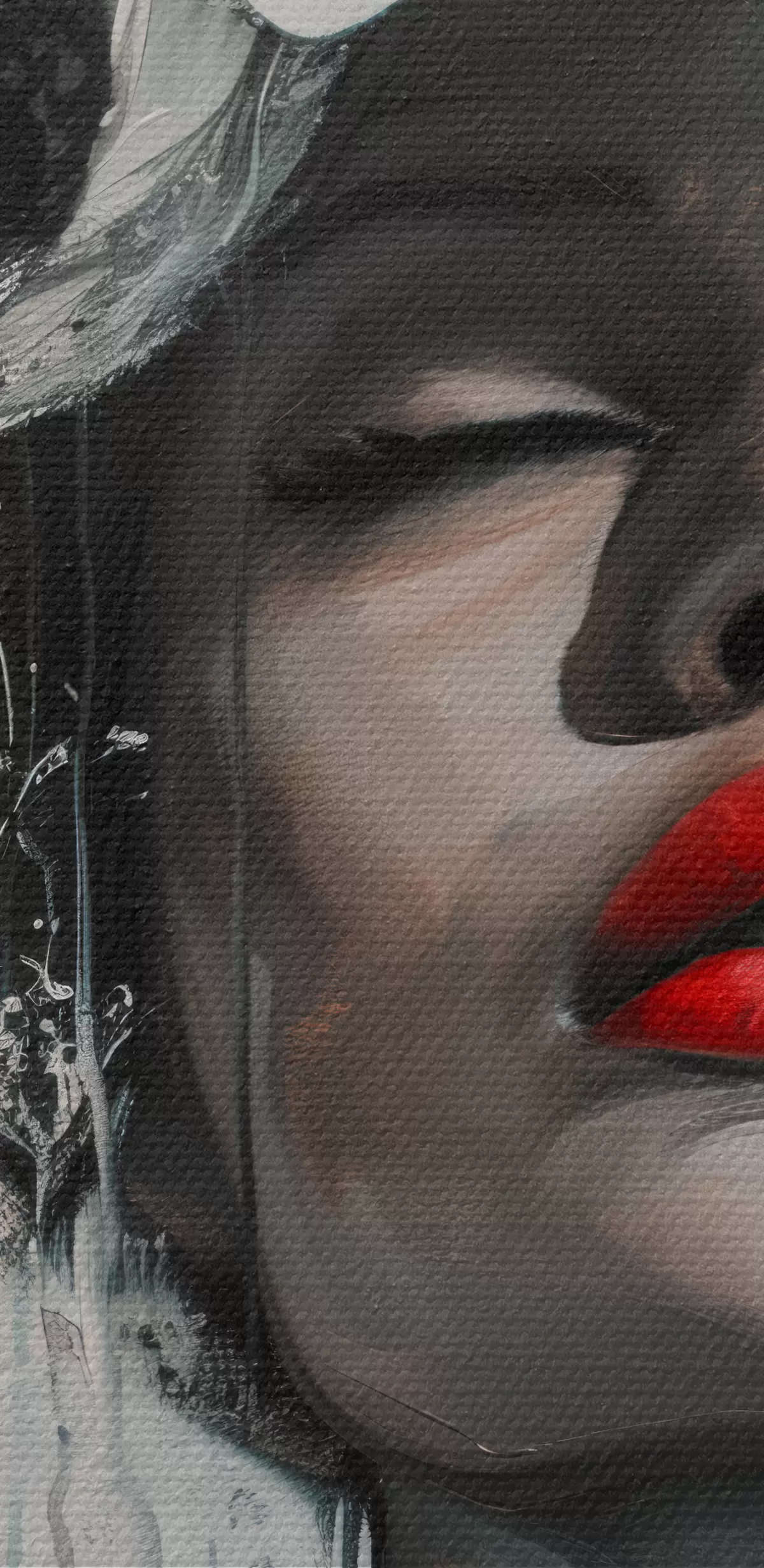 Картина Портрет жінки з квітами у волоссі та червоними губами Арт. s39253