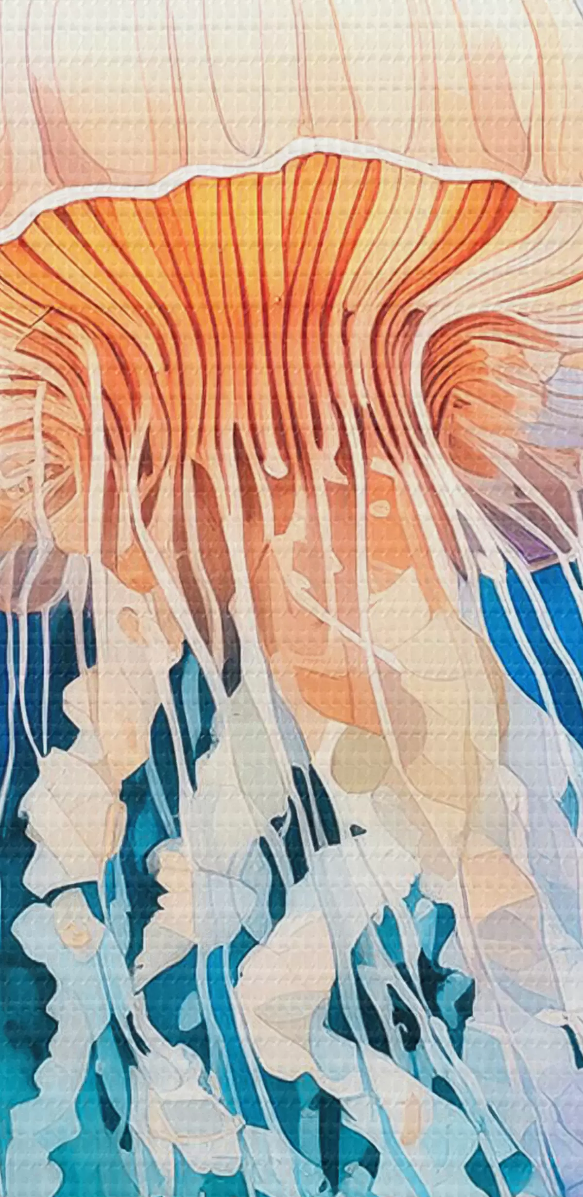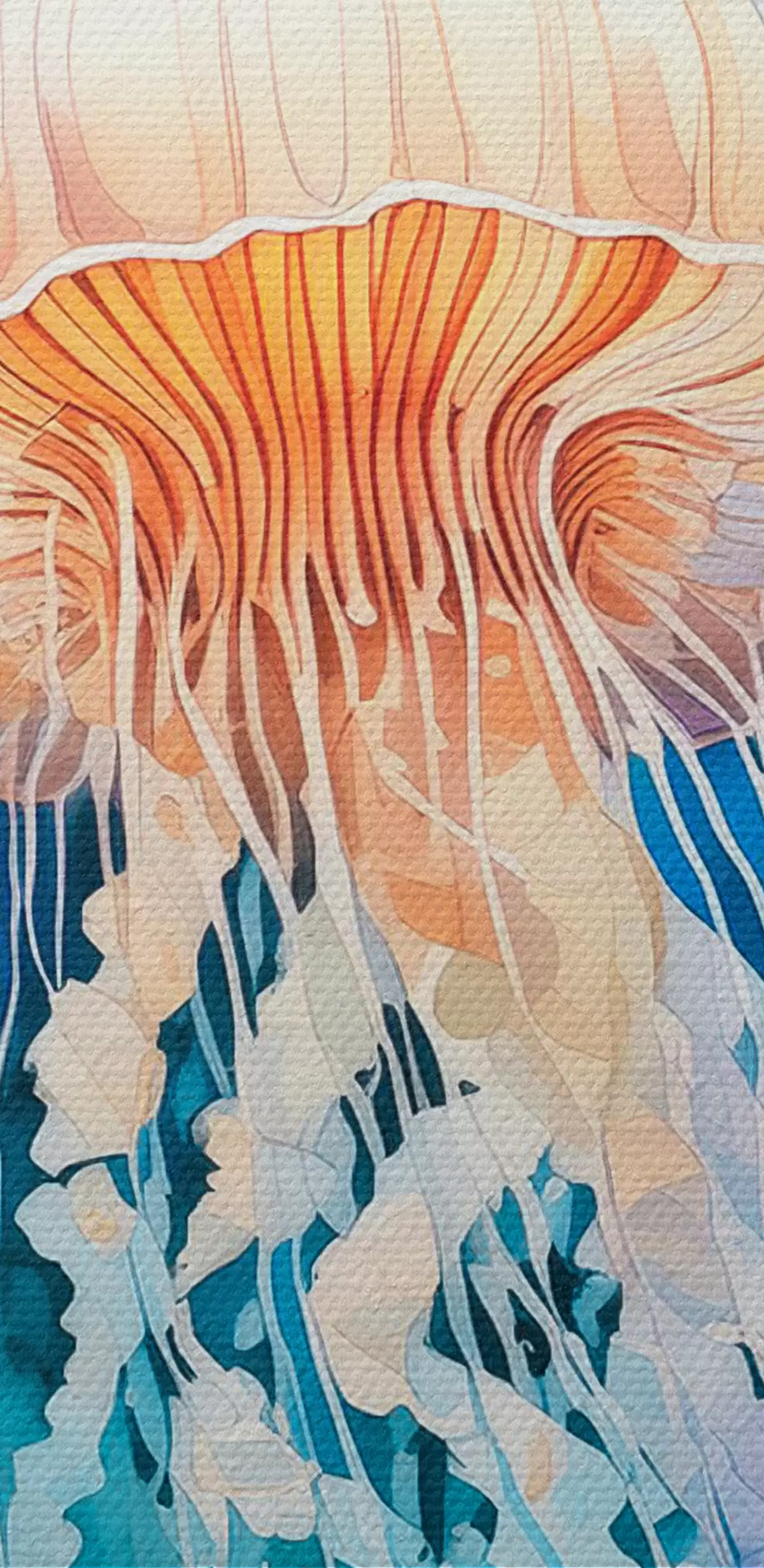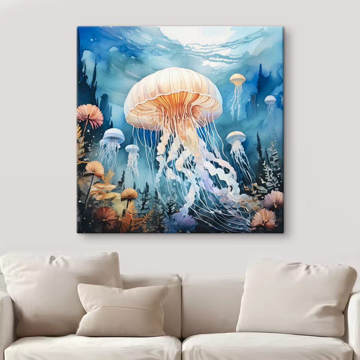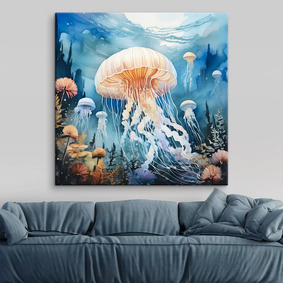 Картина Підводний морський світ, медуза, акварель, коралові рифи, кольори аквамарина s39428