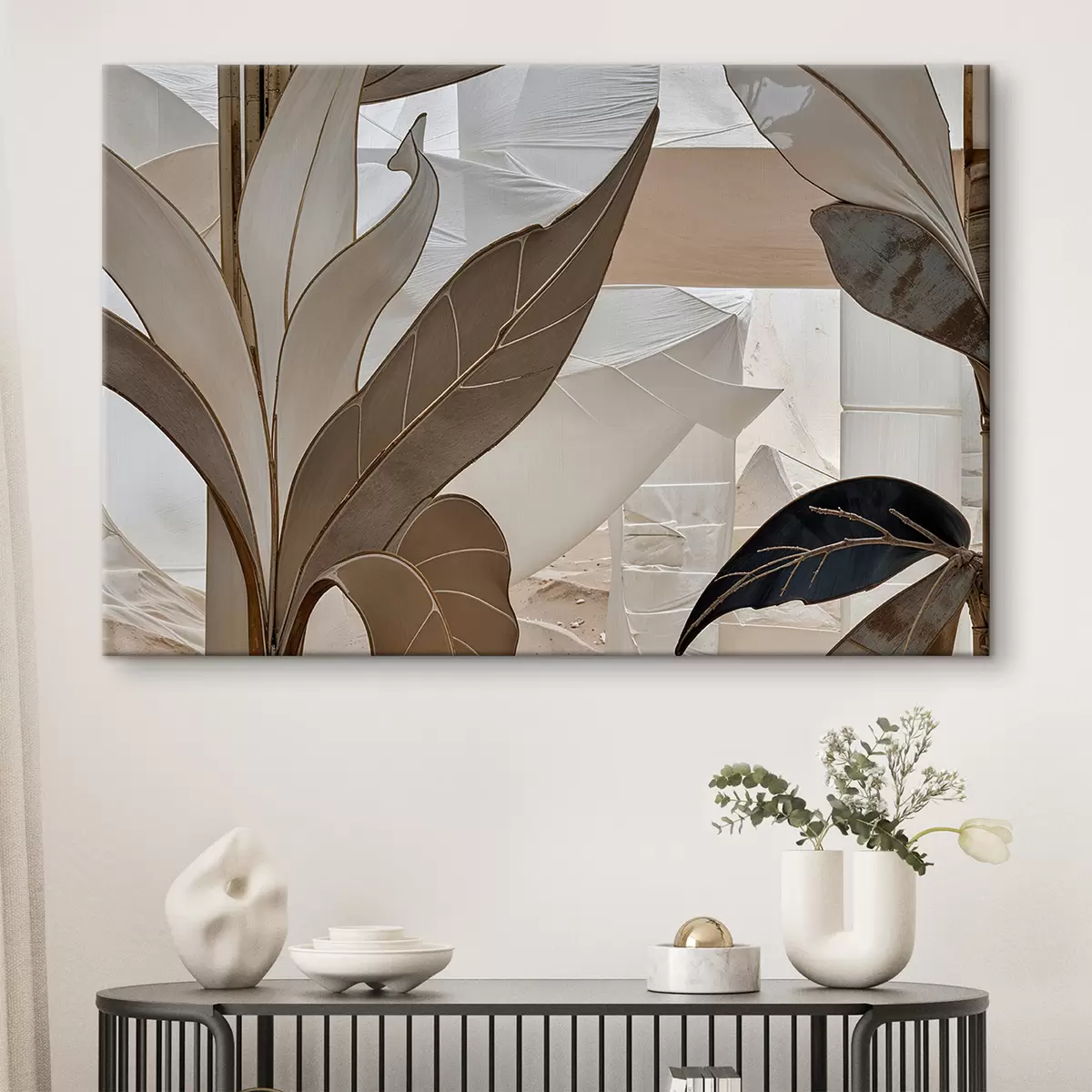 Картина Вид крупним планом абстрактного геометричного візерунка з формами та текстурами, що перекриваються, у відтінках бежевого s39498