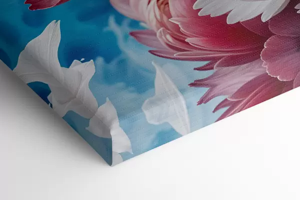 Картина Букет великих яскравих рожевих і білих квітів півонії на блакитному тлі s39519
