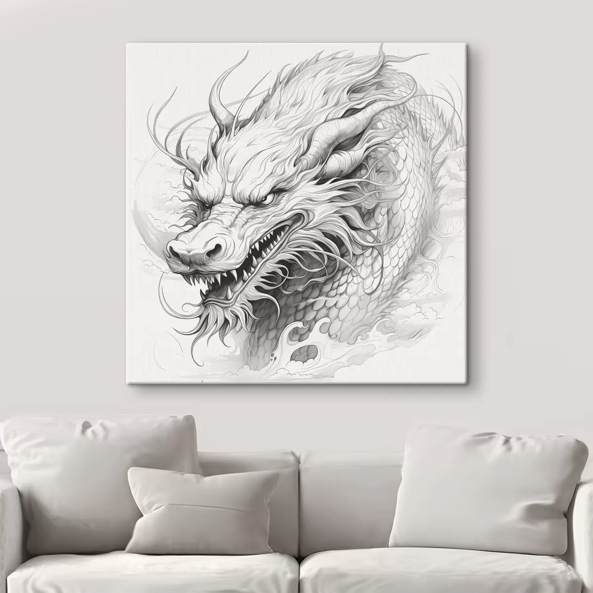 Картина Китайський стиль лінії дракона монохромний малюнок Арт. s39563