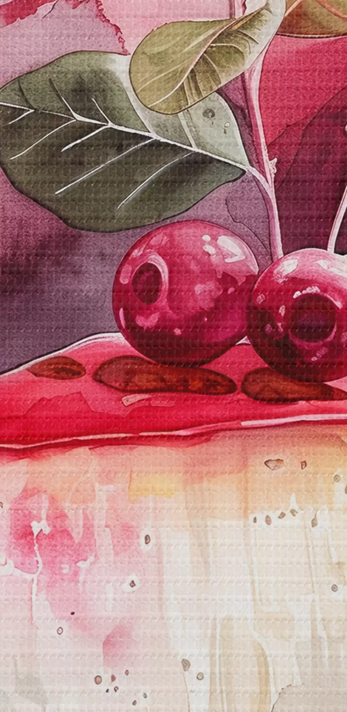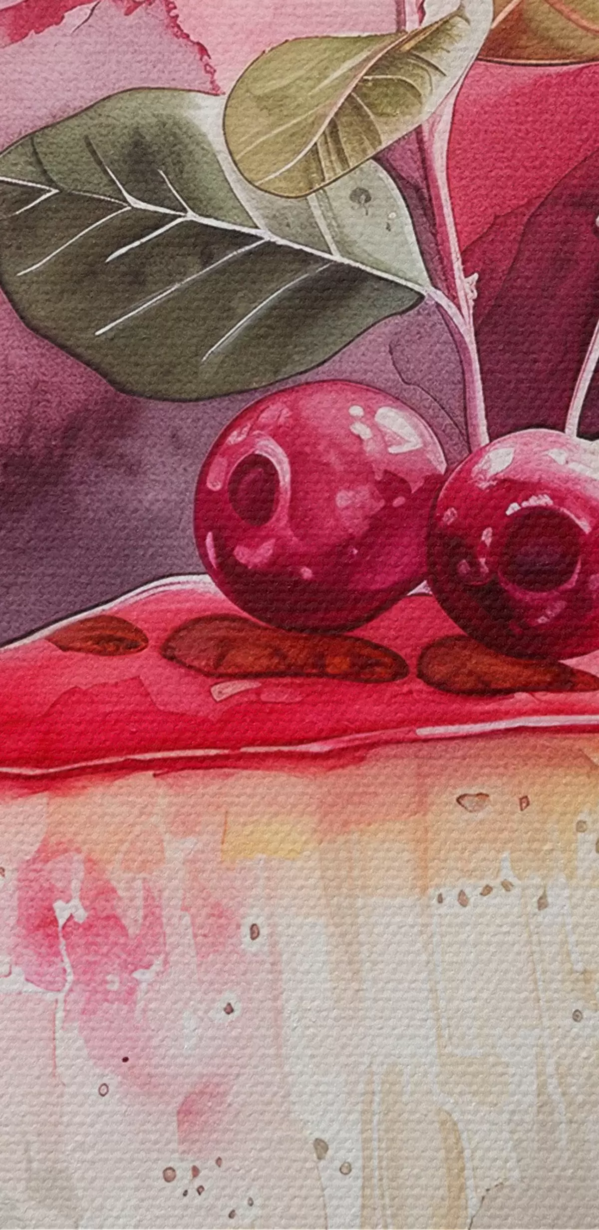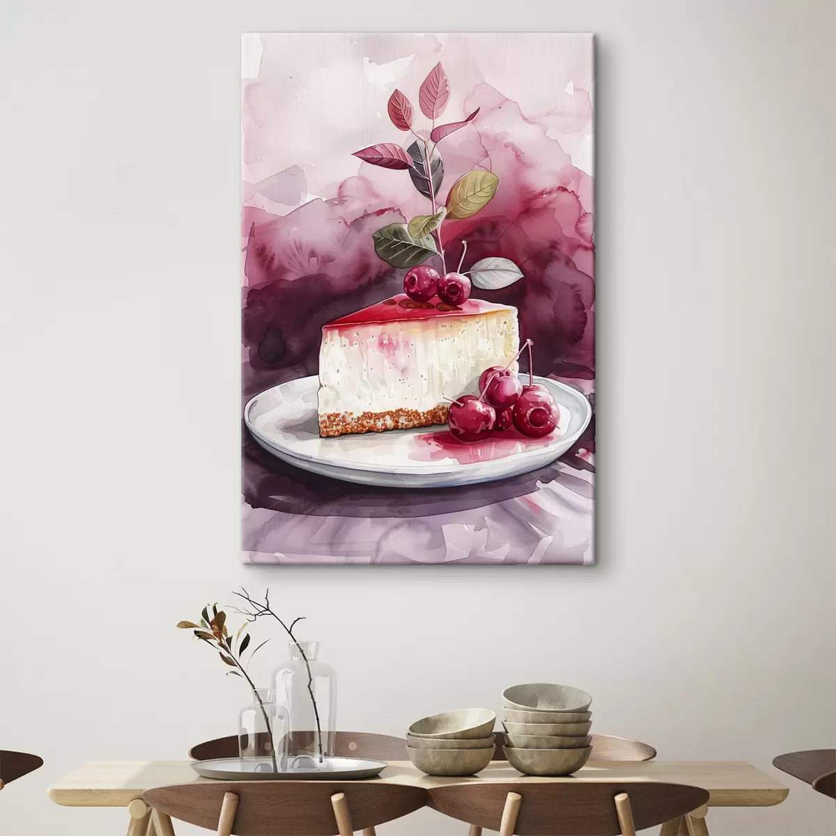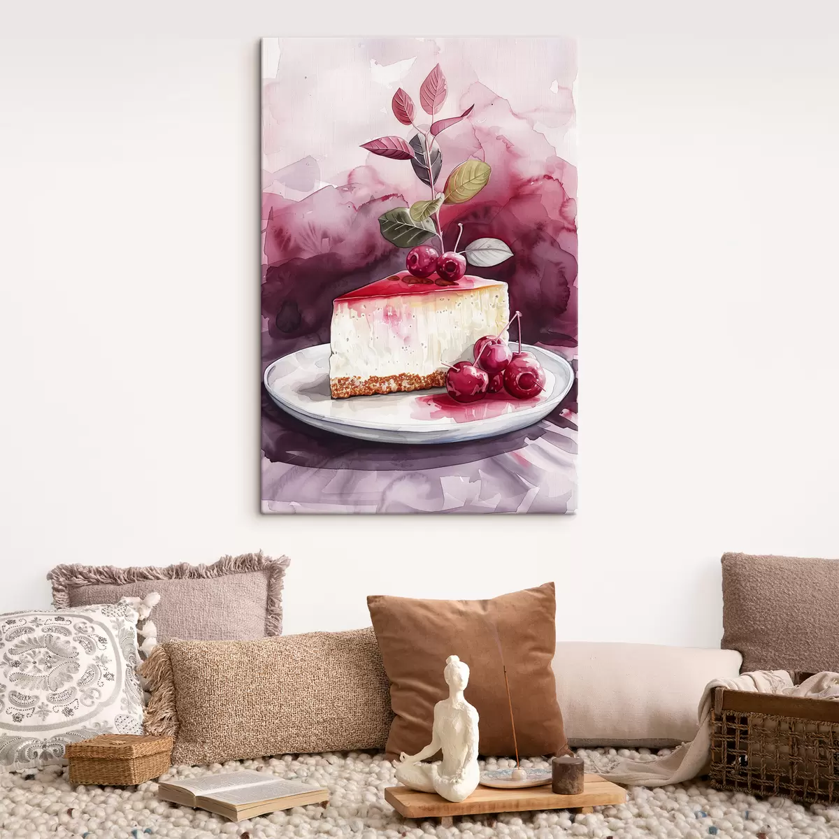Картина Акварель Чізкейк з вишнями, елегантний харчовий мистецтво, червоний і фіолетовий кольори Арт. s39700