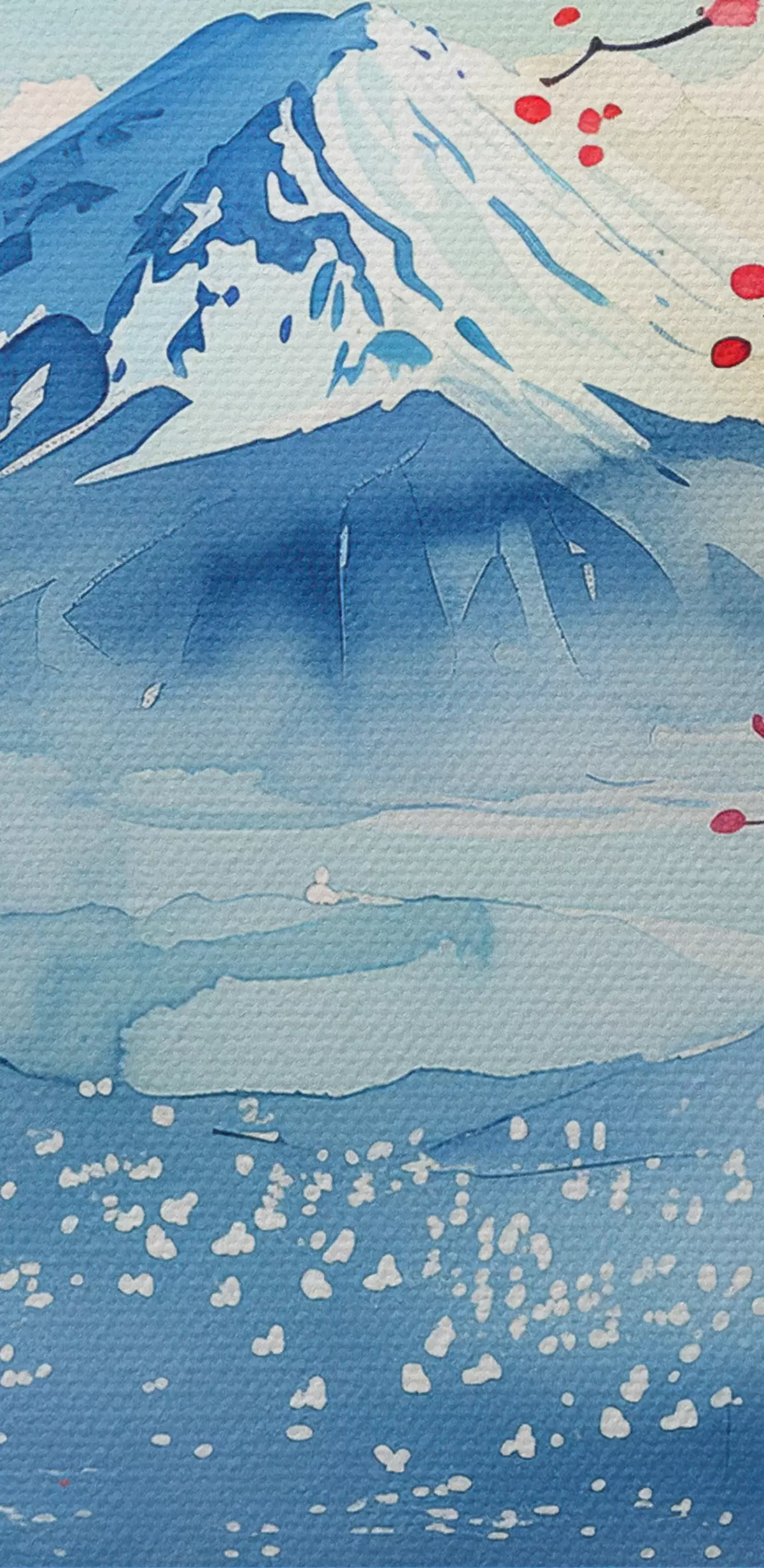 Картина Краєвид гори Фудзі, східна природа, вишневі дерева, захід сонця Арт. s39775