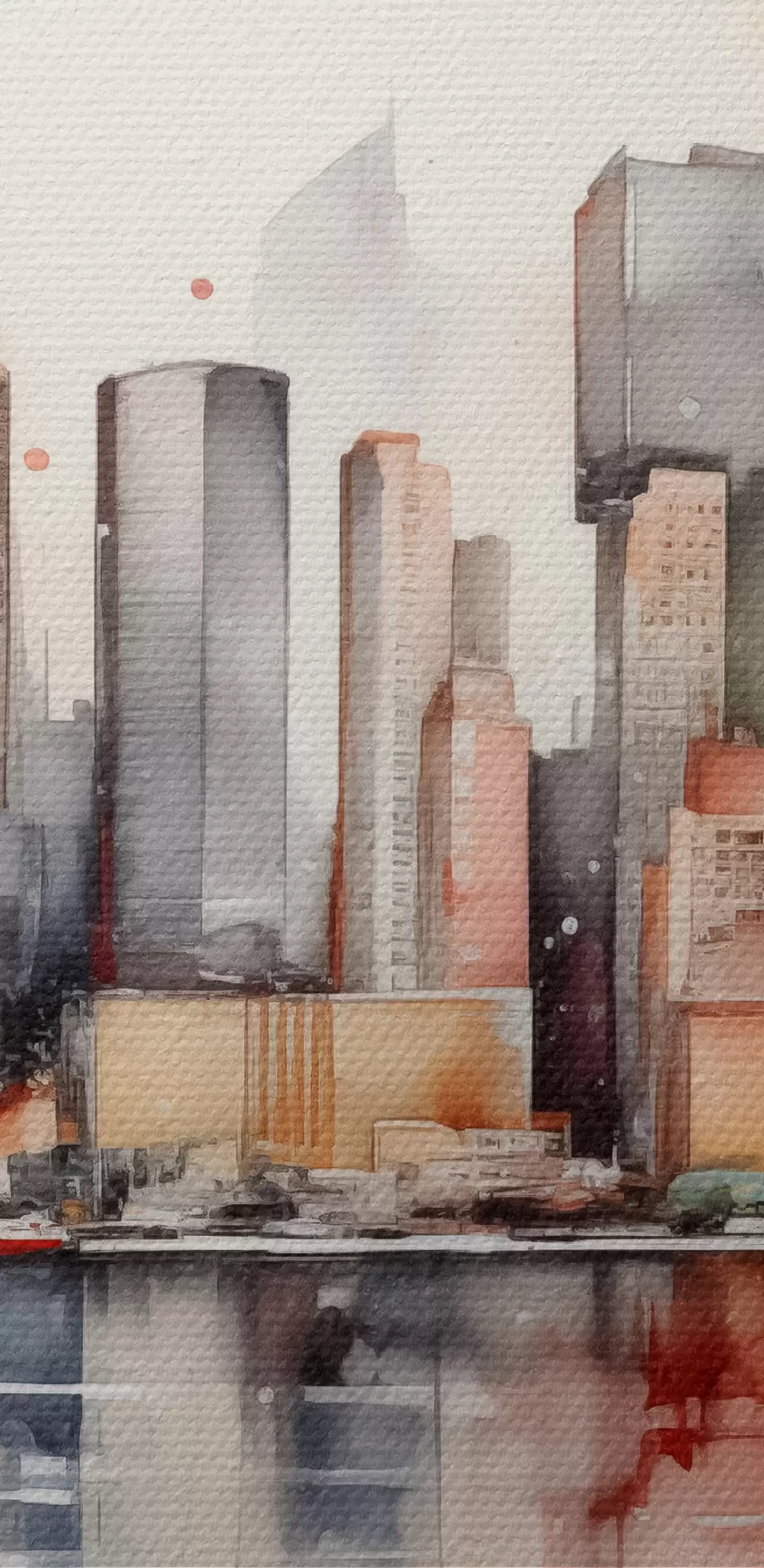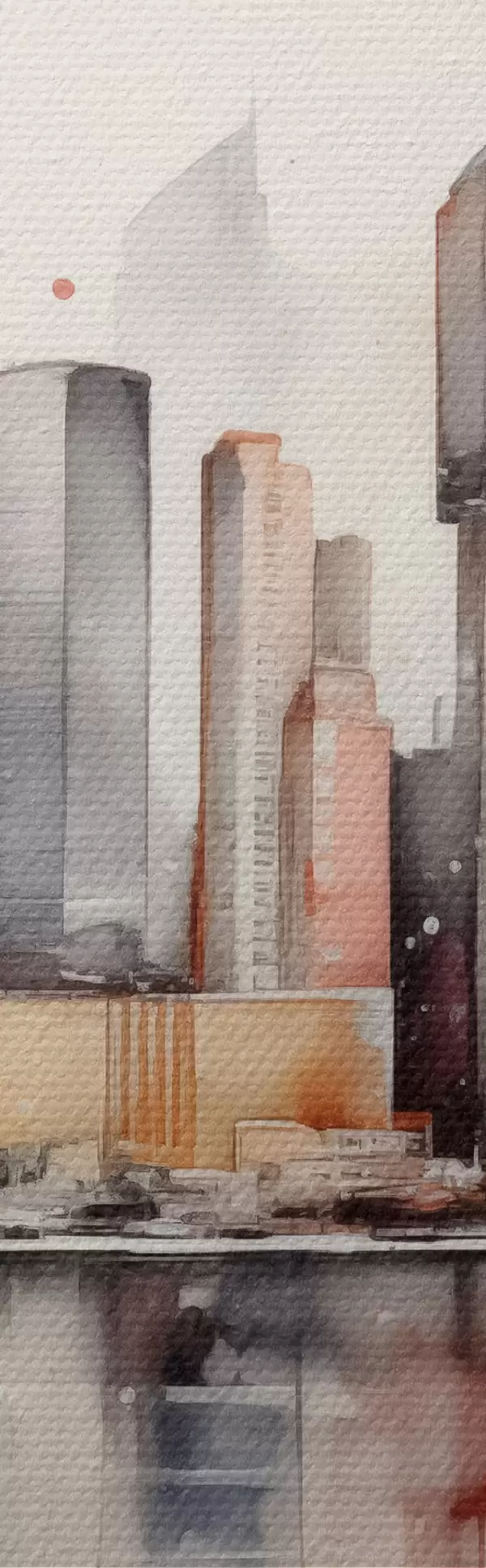 Картина Вид на Нью-Йорк, силуети будівель, акварель s39828