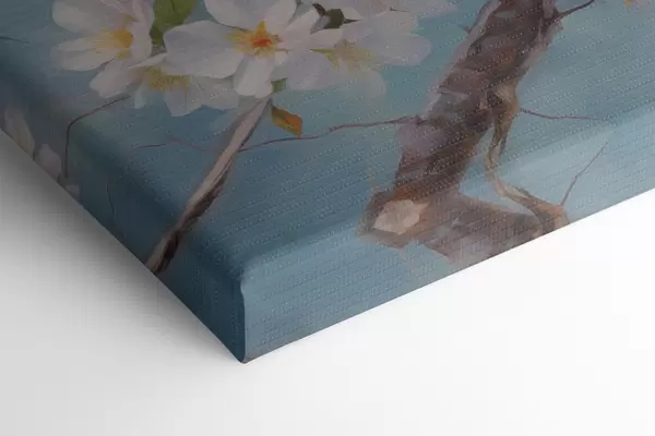 Картина Горобці сидять на квітучій гілці картина маслом, синій, білий, коричневий s39829