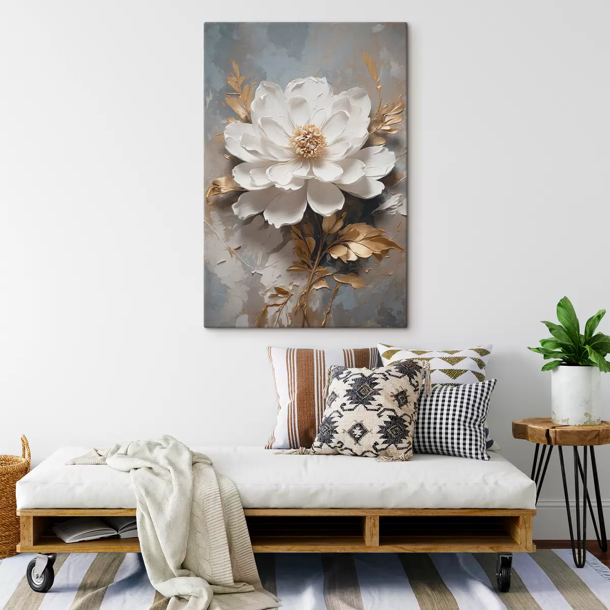 Картина Біла квітка із  стеблами на абстрактним фоном s39865