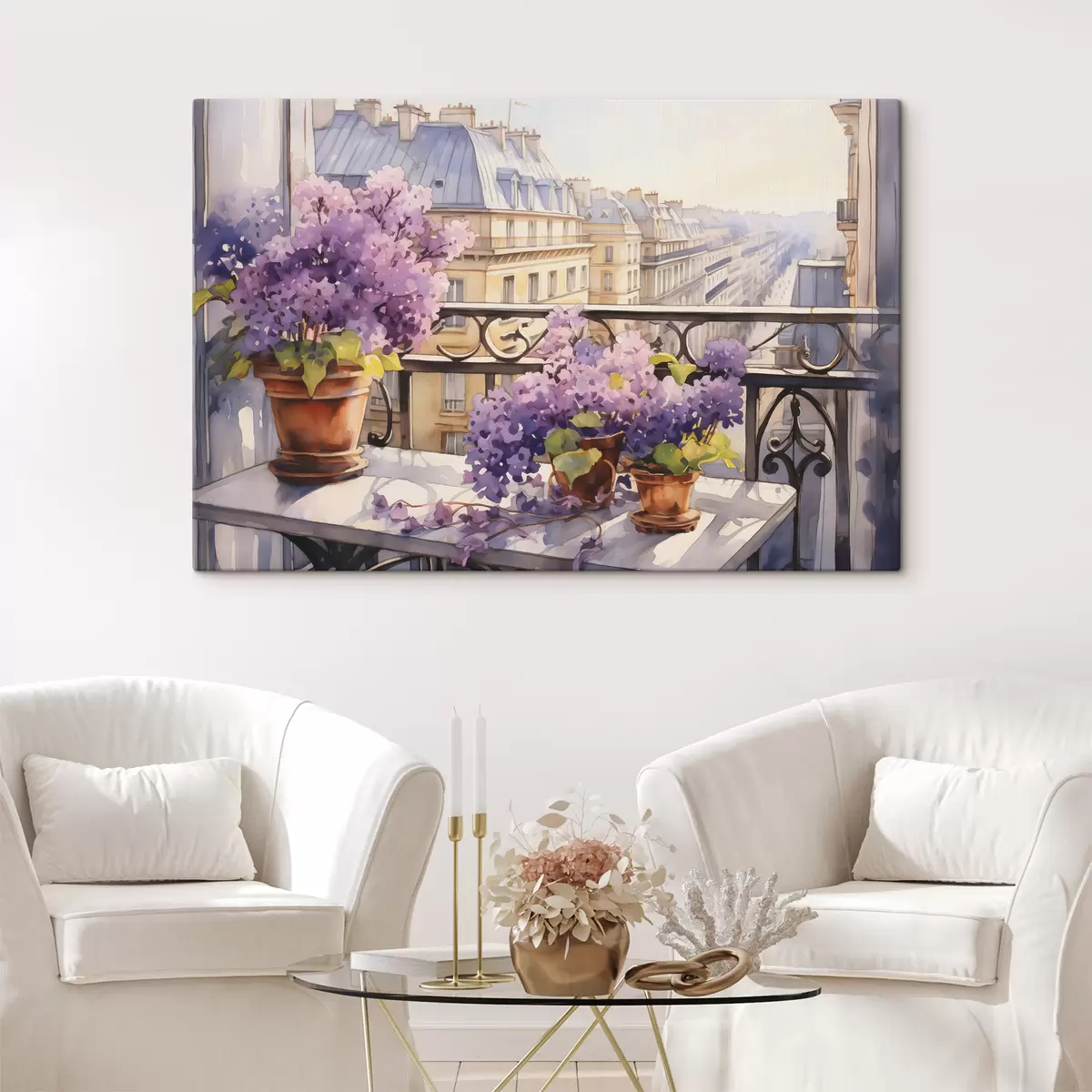 Картина Фіалки в горщику на балконі в паризькій акварелі s39931