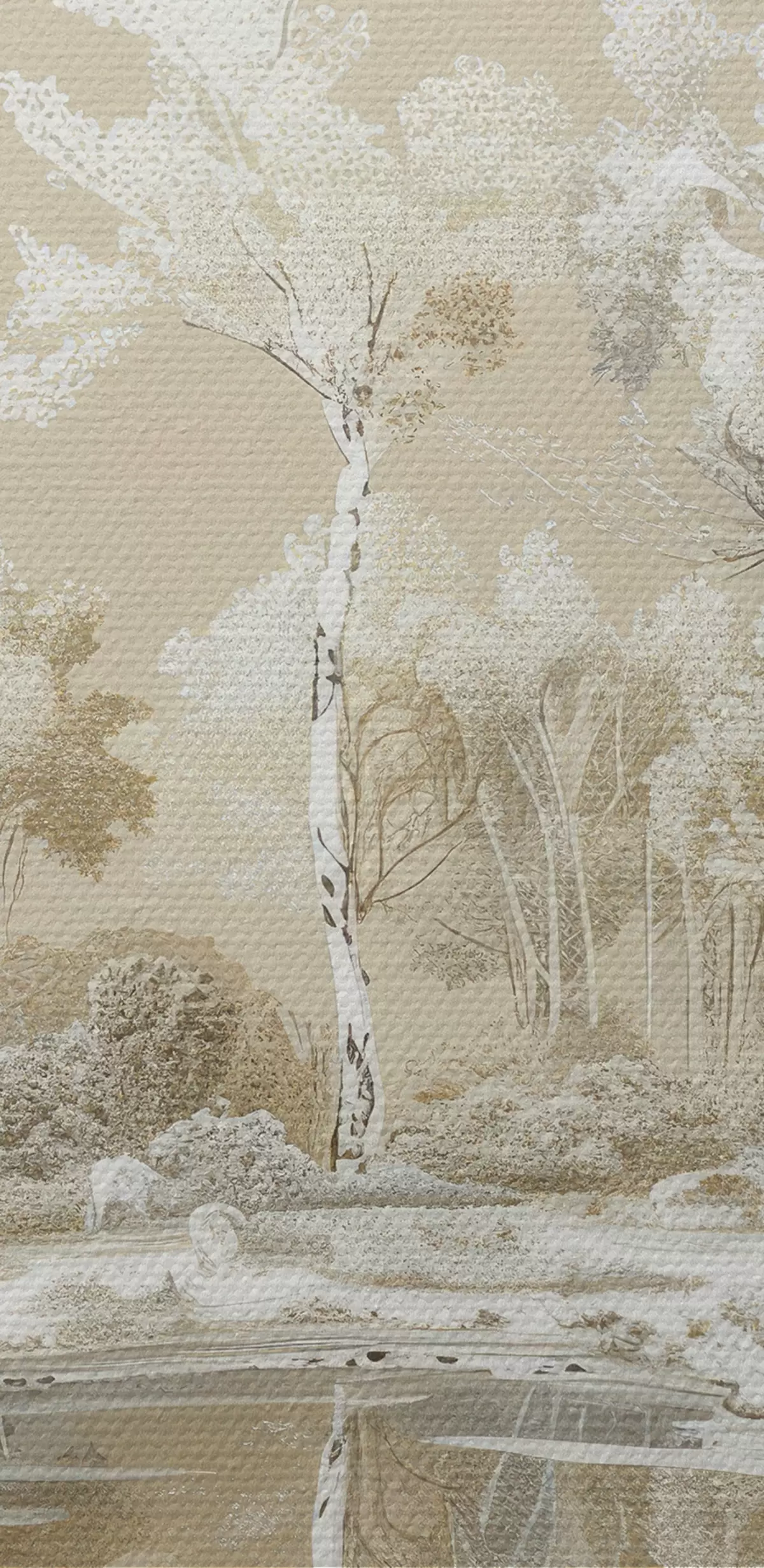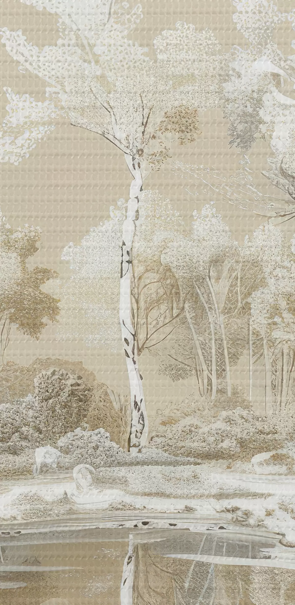 Картина Гарний лісовий краєвид, ставок і дерева, бежевий і білий кольори Арт. s39979