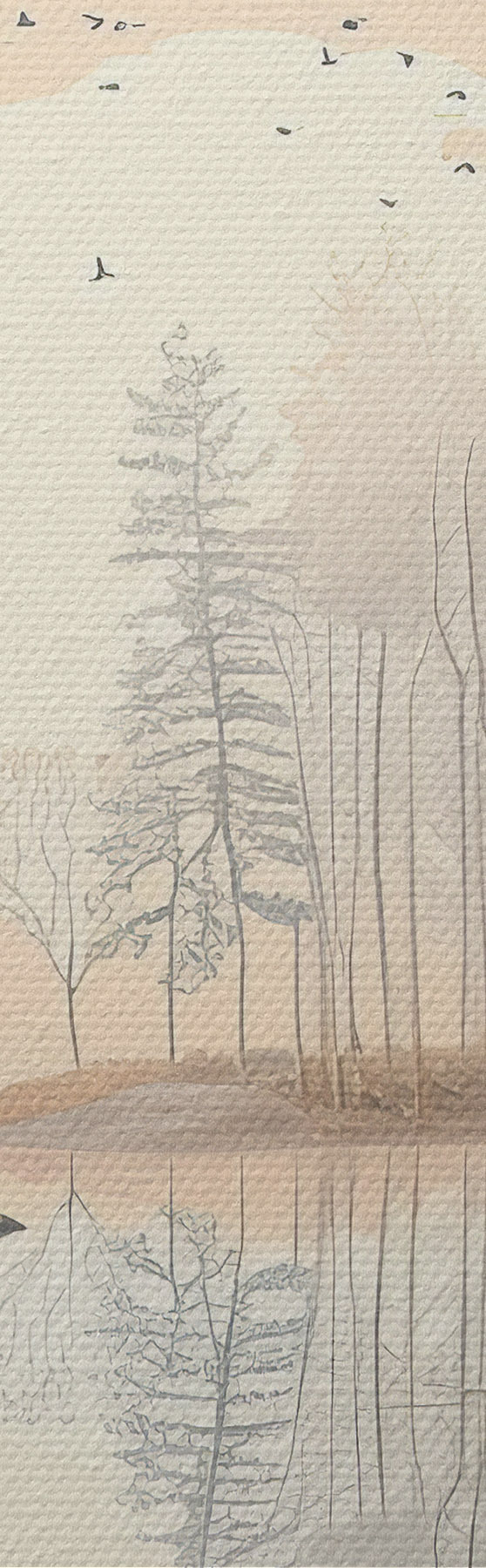 Картина Гарний природний краєвид, ставок і дерева, дика природа, м'які пастельні кольори s39980