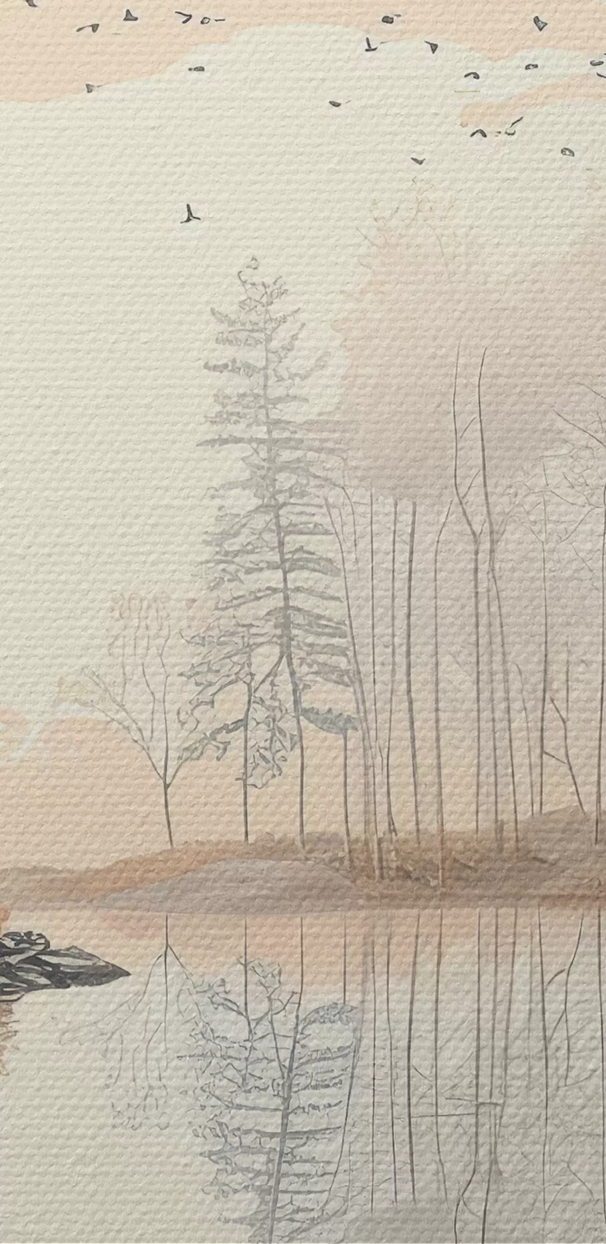 Картина Гарний природний краєвид, ставок і дерева, дика природа, м'які пастельні кольори s39980