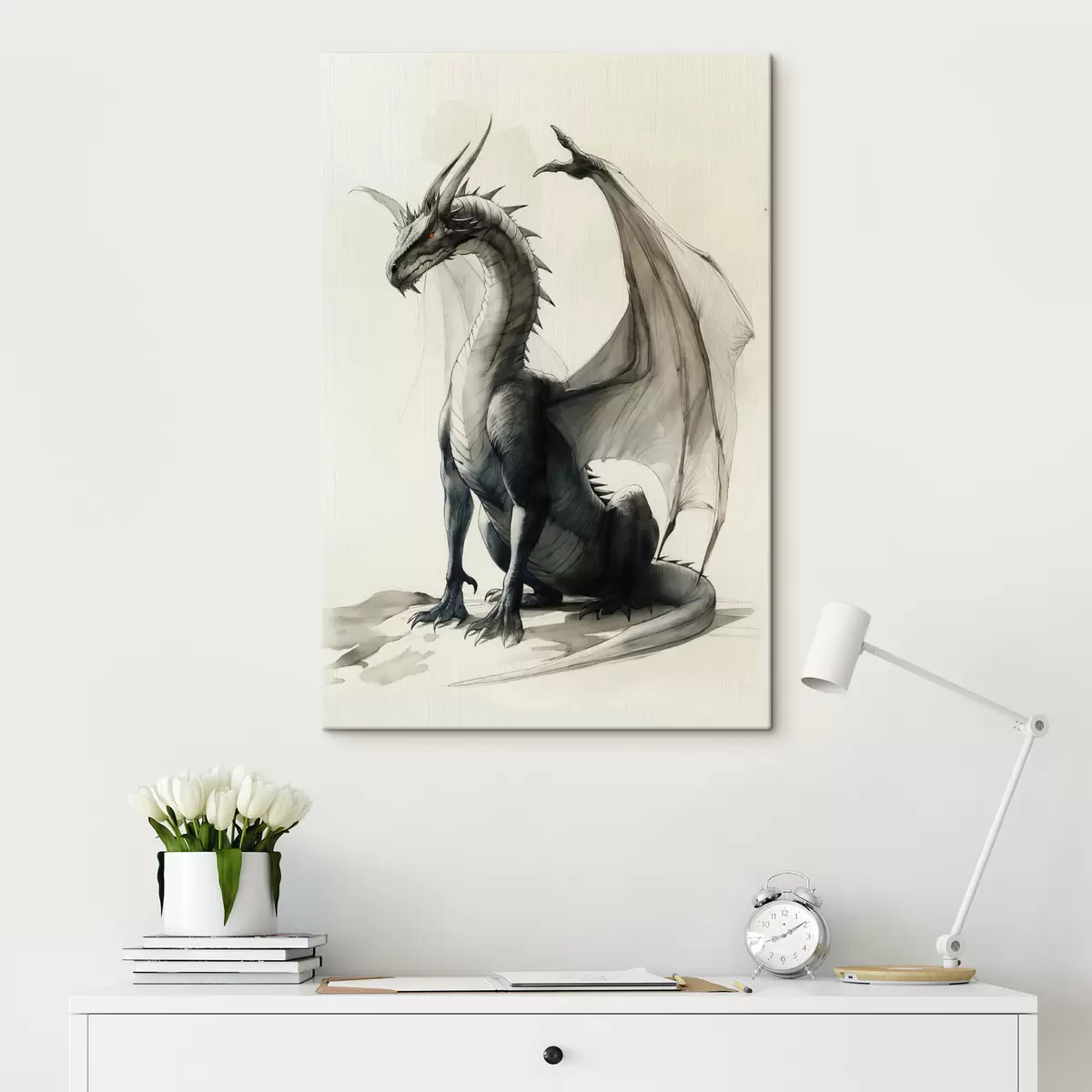Картина Дракон, фарби, акварель, бежевий Арт. s40003