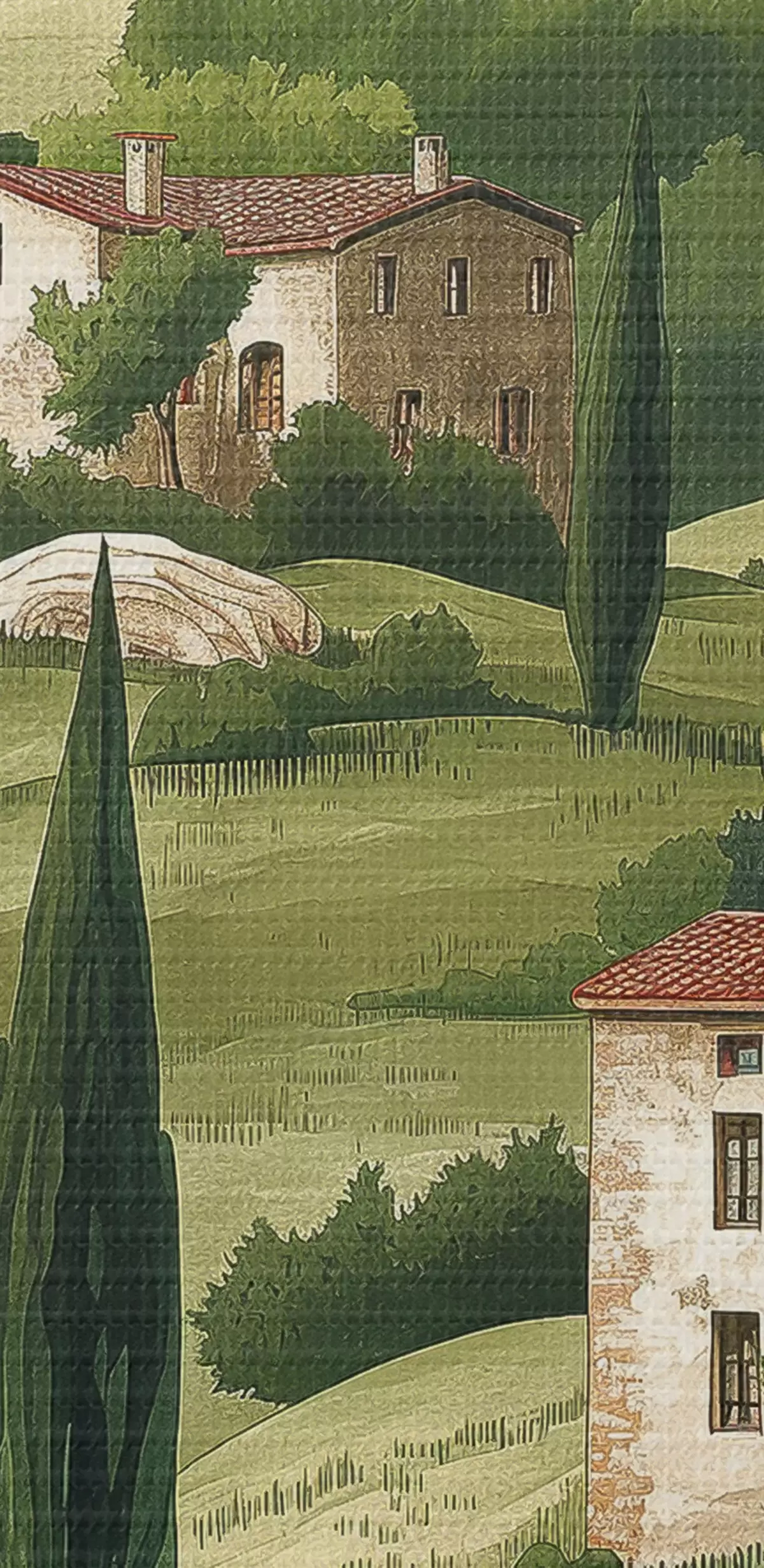 Картина Пейзаж із старовинними будинками, пастельні зелені кольори, акриловий малюнок, сільський s40080