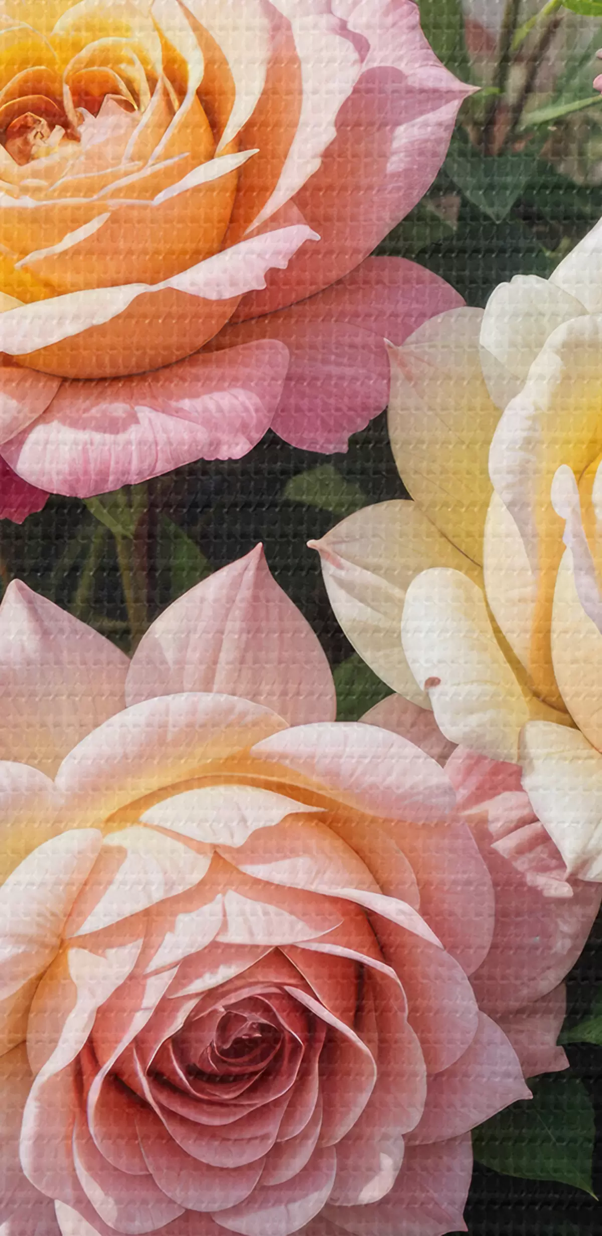 Картина Букет різнокольорових троянд різних відтінків рожевого, жовтого та помаранчевого кольорів із зеленим листям s40149