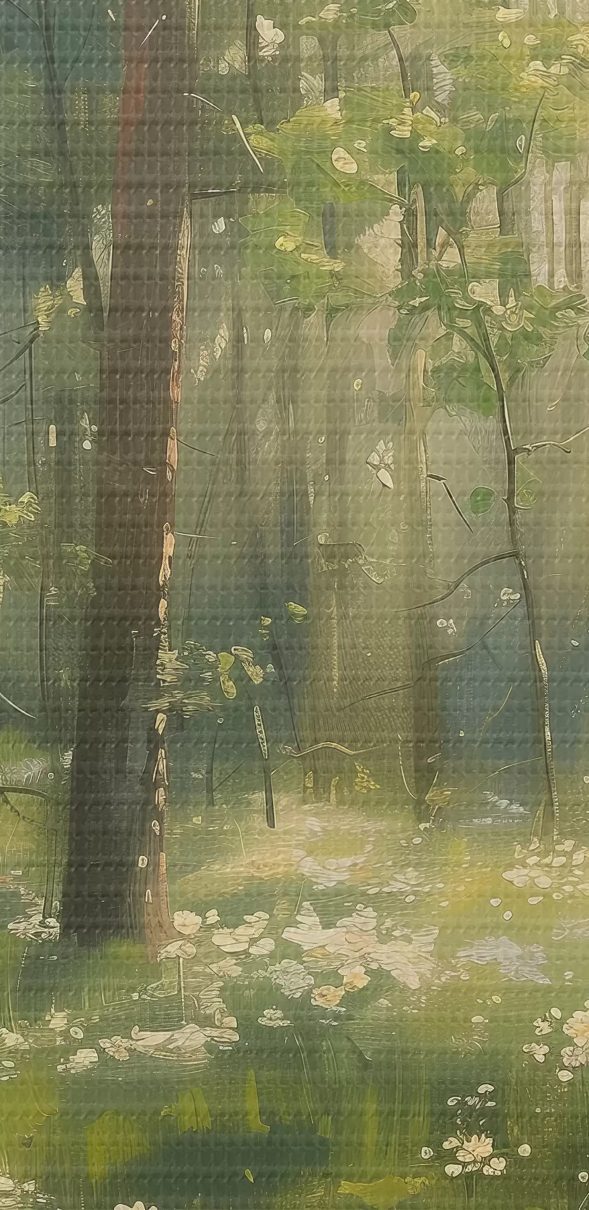 Картина Ліс із сонячним світлом на деревах, квіти ромашки, зелена трава, малюнок акрилом Арт. s40226