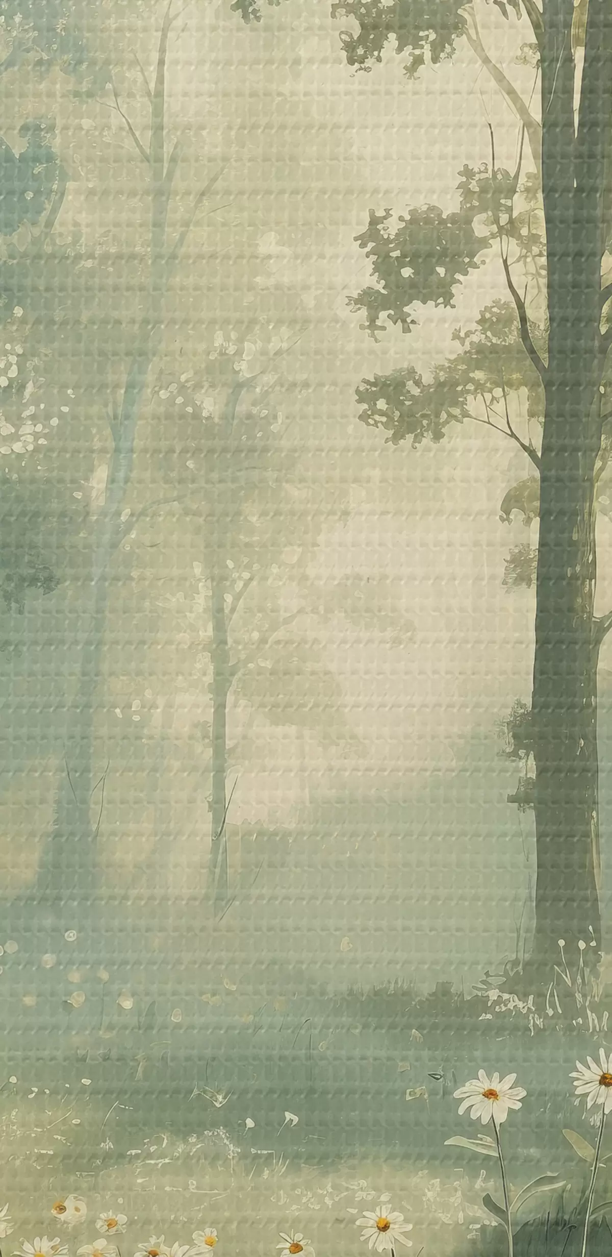 Картина Ліс з м'яким сонячним світлом, квіти ромашки, дерева, зелена трава, малюнок акрилом Арт. s40228
