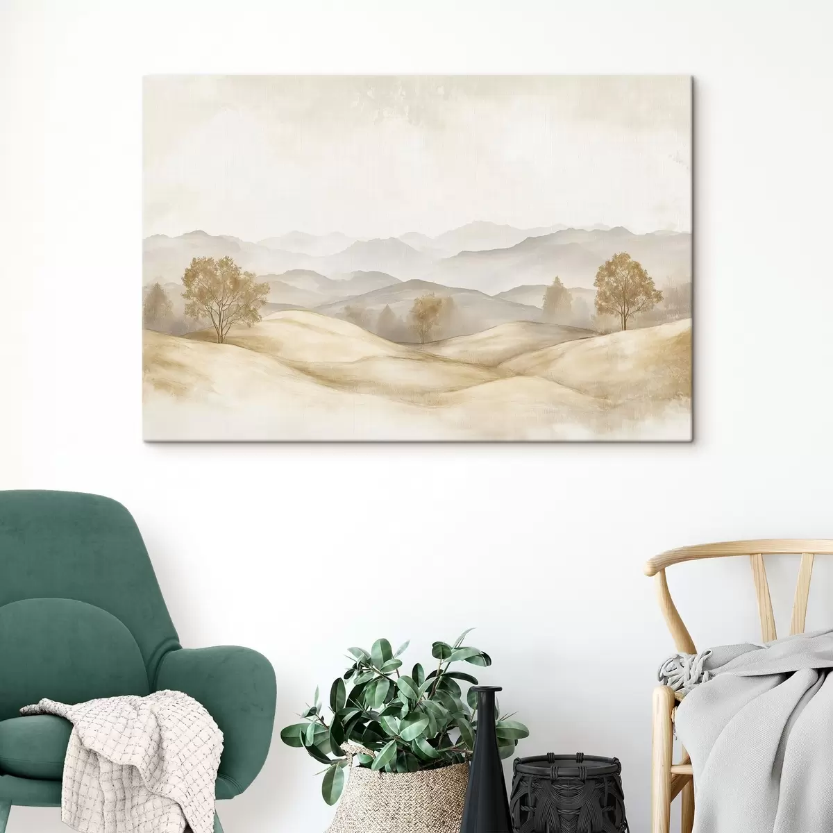 Картина Пейзаж природи в палітрі бежевого кольору, луг, дерева, малюнок аквареллю Арт. s40231