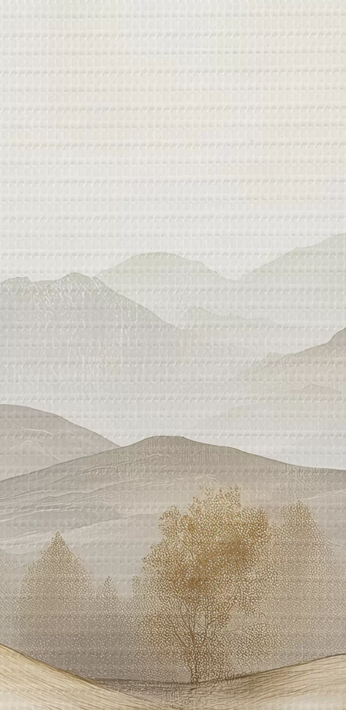 Картина Пейзаж природи в палітрі бежевого кольору, луг, дерева, малюнок аквареллю s40231