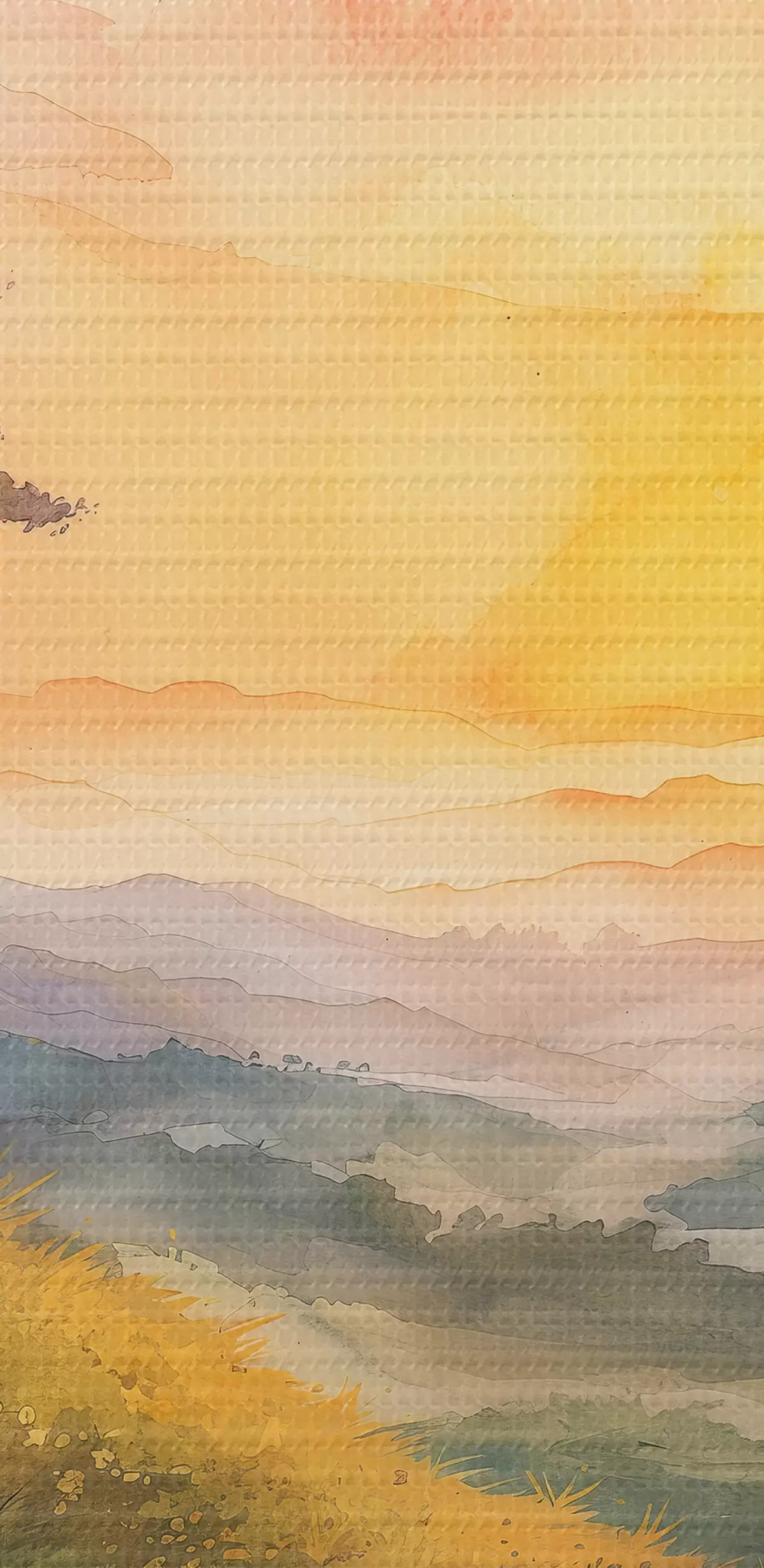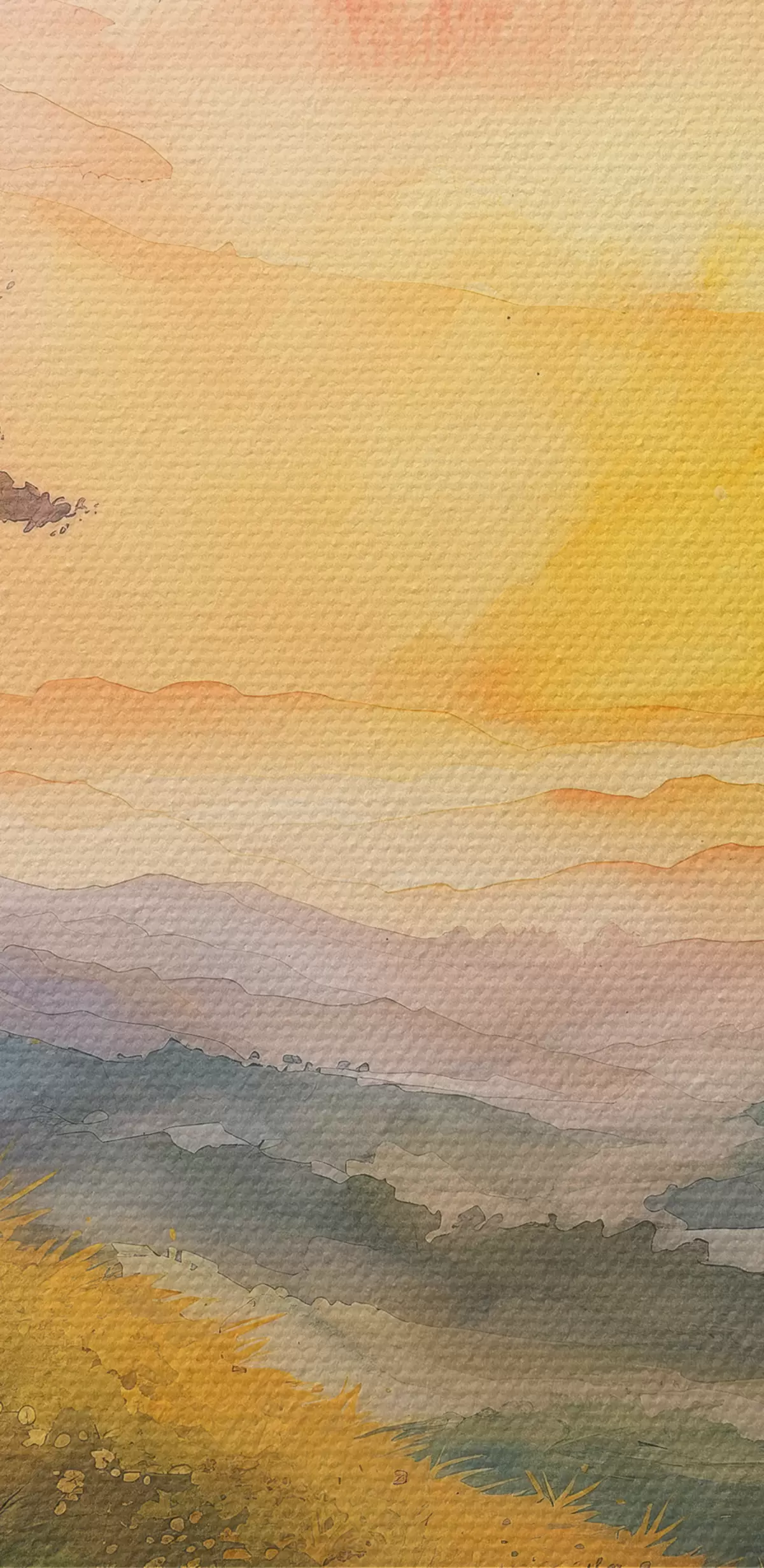 Картина Луг з пагорбами і деревом, квіти, акварель Арт. s40303
