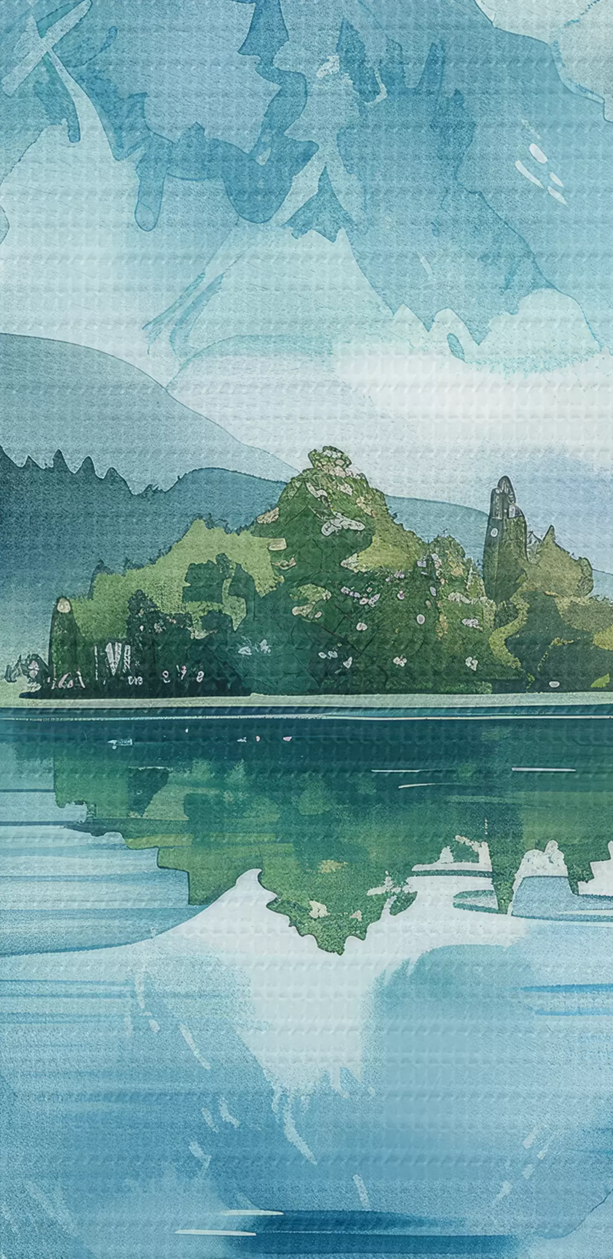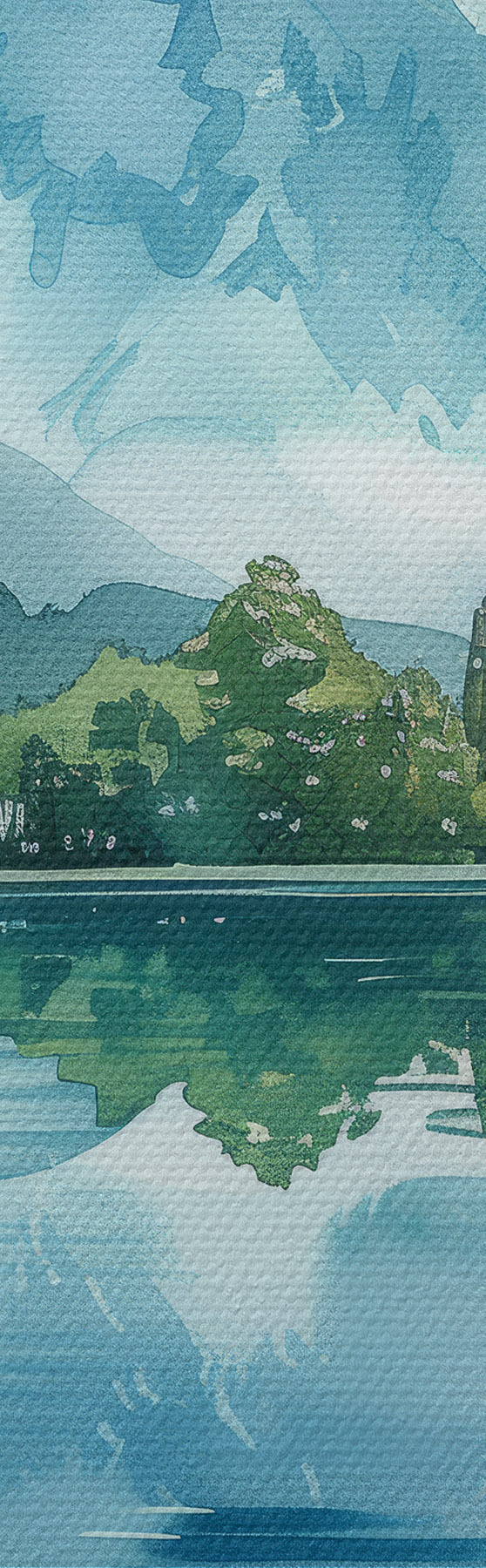 Картина Акварель гірський пейзаж, річка, зелені та сині кольори s40310