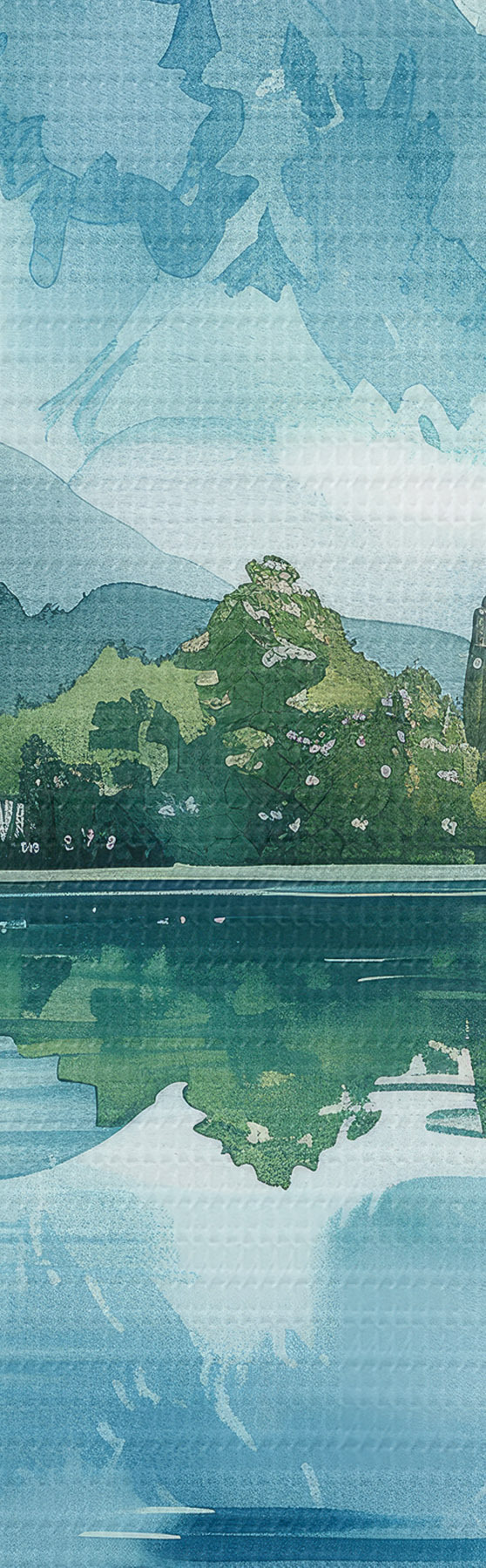 Картина Акварель гірський пейзаж, річка, зелені та сині кольори Арт. s40310
