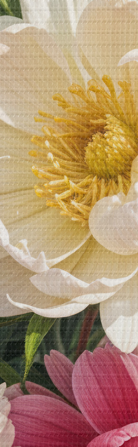 Картина Букет яскравих квітів півонії різних відтінків рожевого, білого та жовтого з бризками фарби s40403