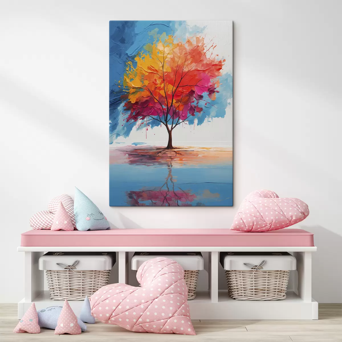 Картина Абстрактне різнокольорове дерево на озері Арт. s40455