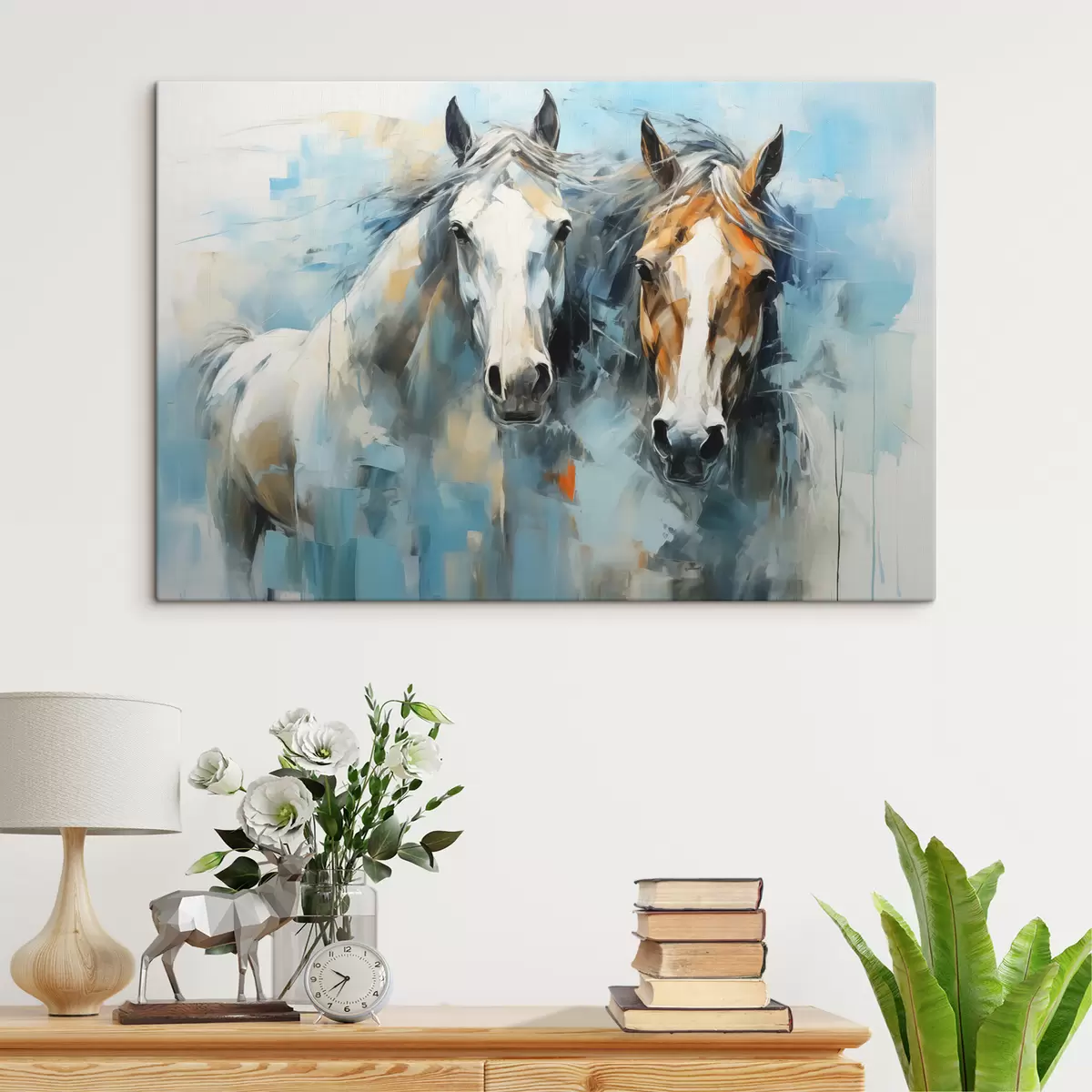 Картина Коні абстрактний живопис білий, блакитний, коричневий колір Арт. s40493